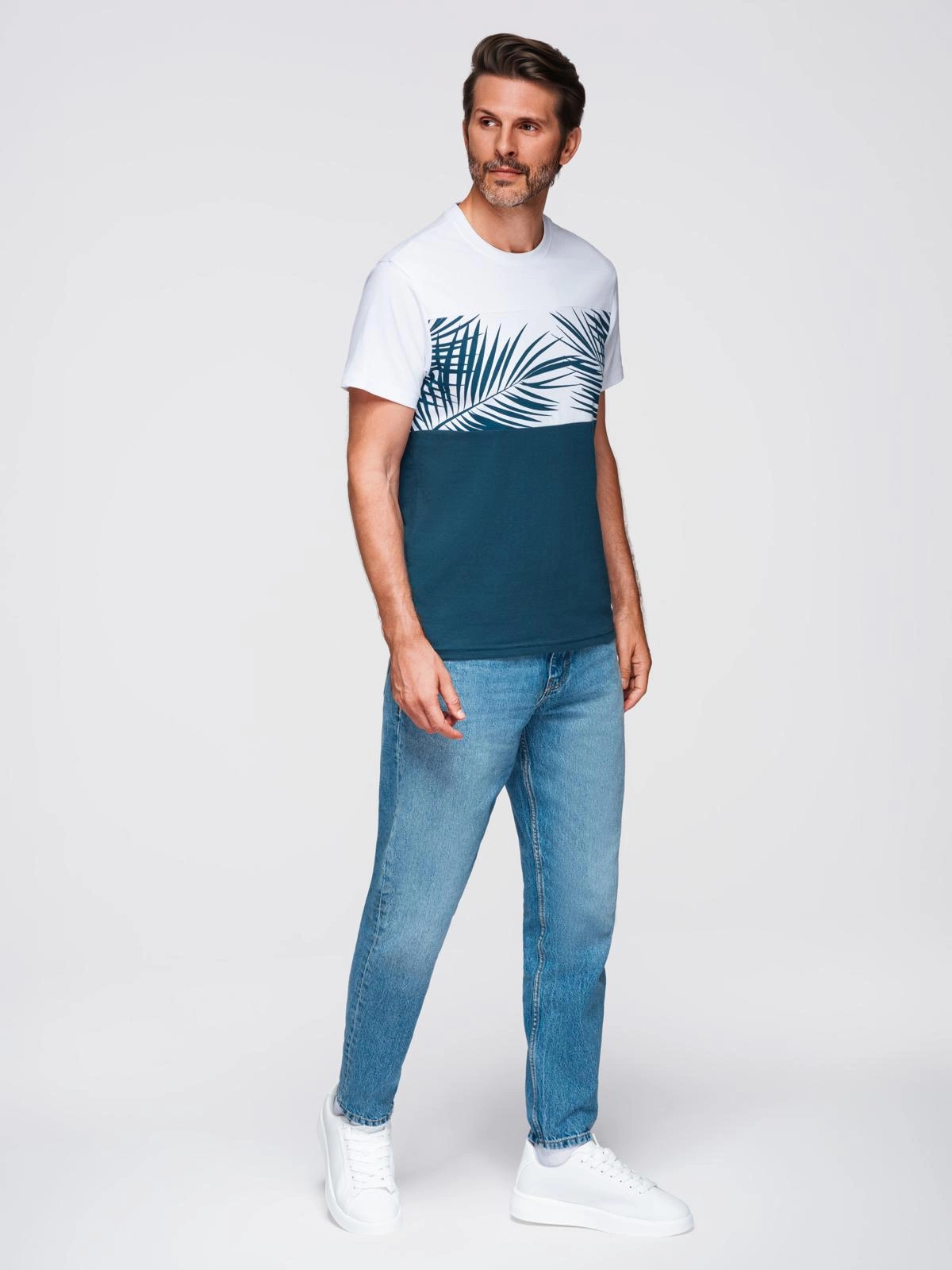 T-shirt z palmowymi liśćmi z kolekcji Cotton Line wprowadza do stylizacji wakacyjny klimat. Wykonany jest z miękkiej dzianiny o delikatnym splocie, która jest lekka, przewiewna i miła w dotyku. Kontrastowe kolory i letni motyw w patchworkowym wydaniu kreują niepowtarzalny design koszulki. Regularny krój t-shirtu dobrze układa się na wielu męskich sylwetkach.