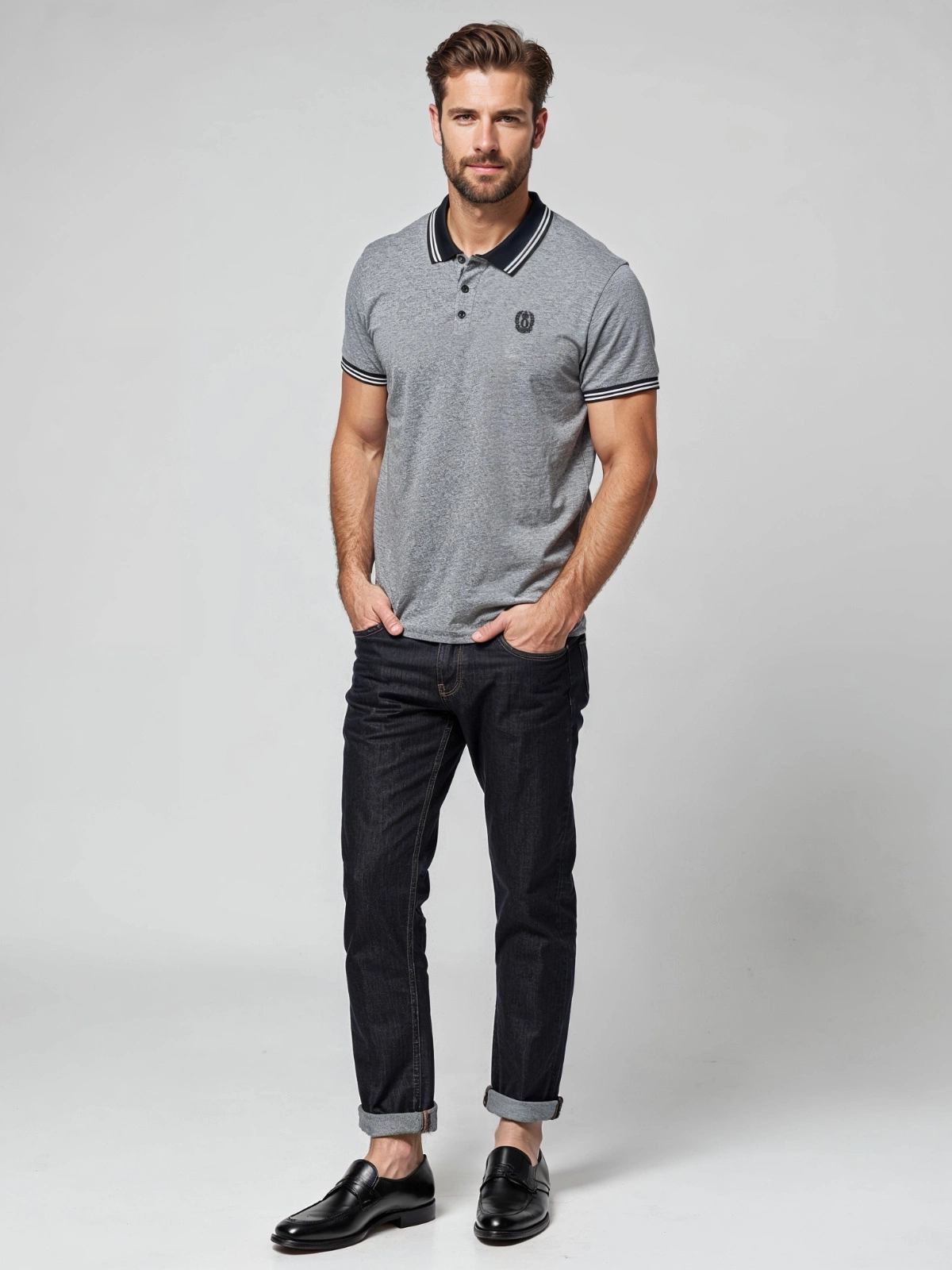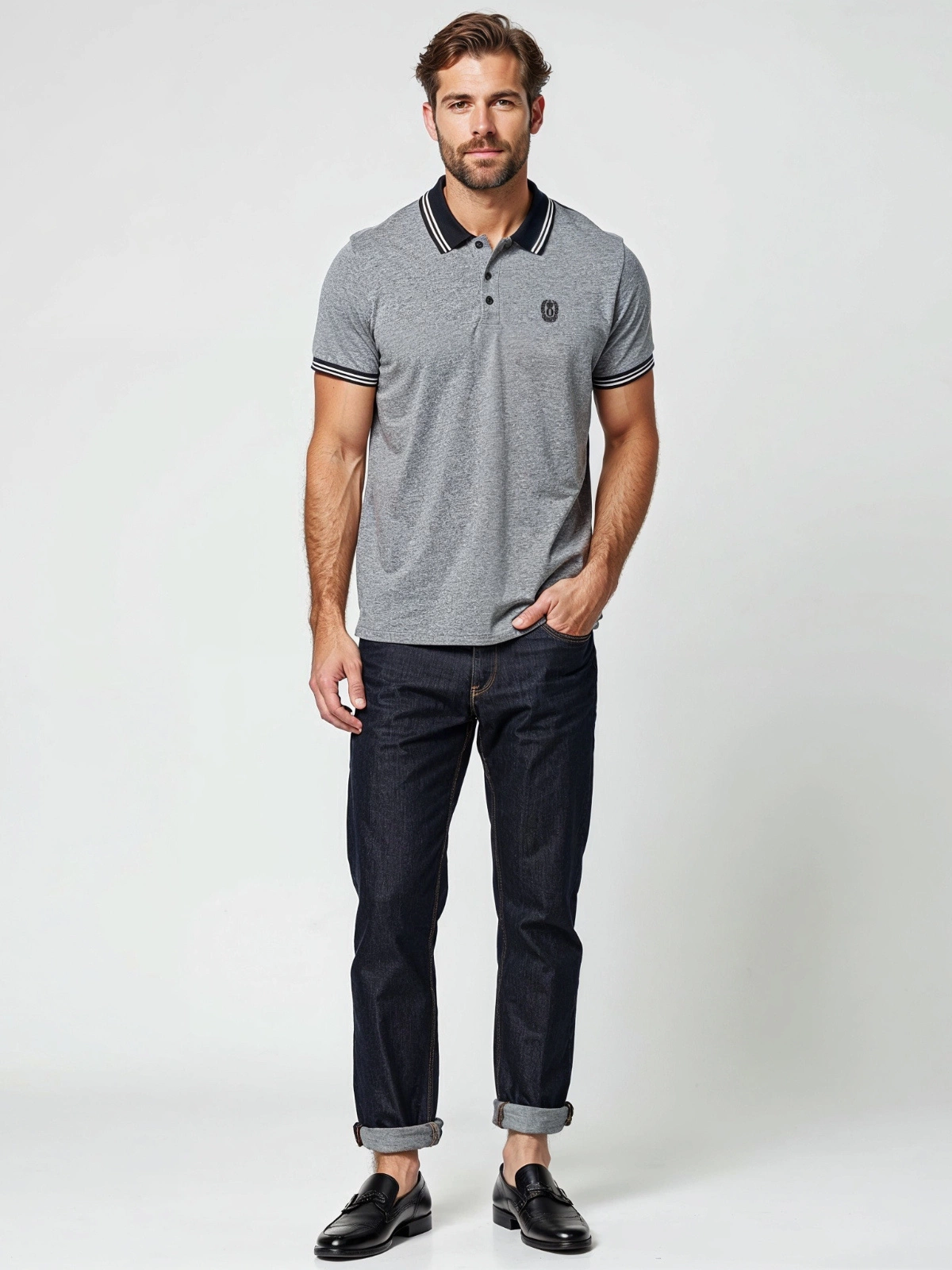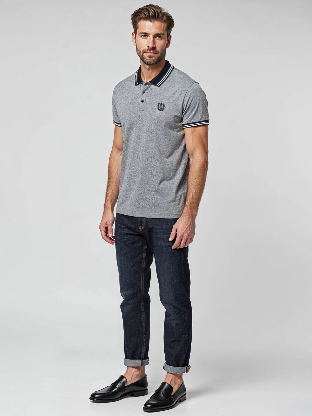 - Kołnierzyk polo z jednolitymi guzikami