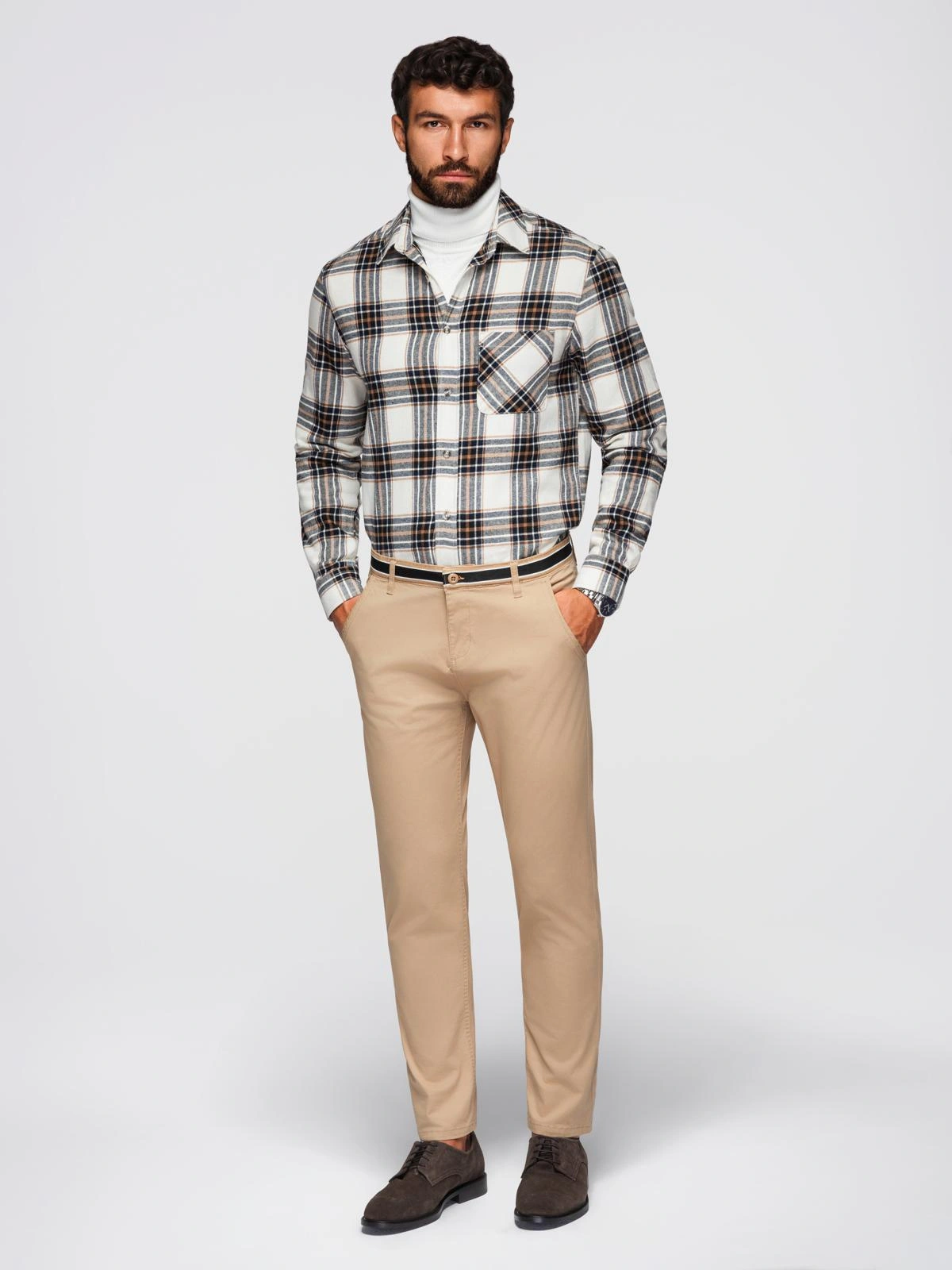 Spodnie chinosy są kwintesencją męskiej elegancji, a ten model świetnie sprawdzi się na wyjątkowe okazje. Dodadzą klasy każdej stylizacji w konwencji smart casual i nie tylko. Ozdobna taśma w pasie wyraźnie akcentuje talię, podkreślając atuty sylwetki. Bawełna z dodatkiem elastanu pozwala lepiej dopasować spodnie do ciała.