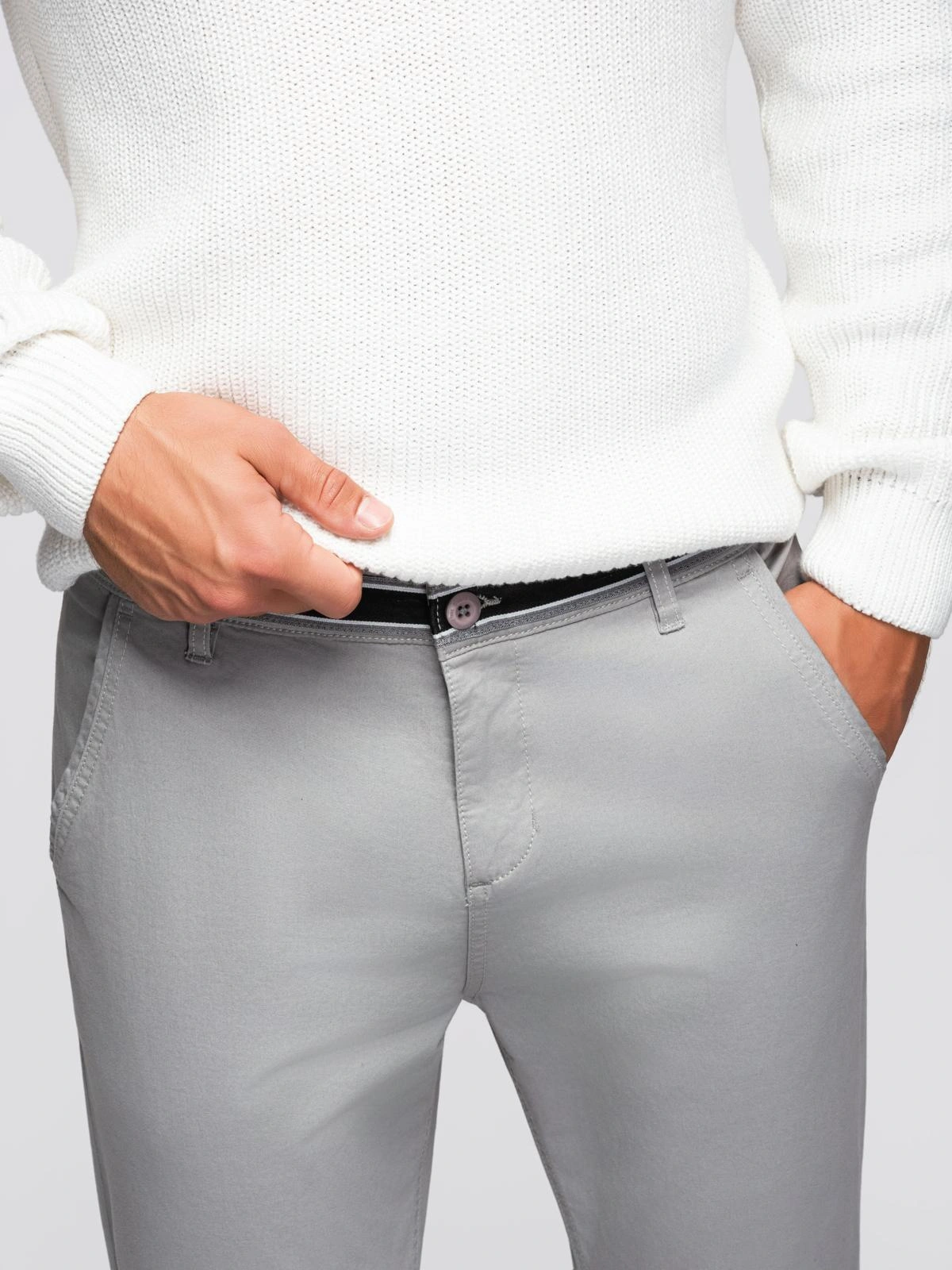 Spodnie chinosy są kwintesencją męskiej elegancji, a ten model świetnie sprawdzi się na wyjątkowe okazje. Dodadzą klasy każdej stylizacji w konwencji smart casual i nie tylko. Ozdobna taśma w pasie wyraźnie akcentuje talię, podkreślając atuty sylwetki. Bawełna z dodatkiem elastanu pozwala lepiej dopasować spodnie do ciała.