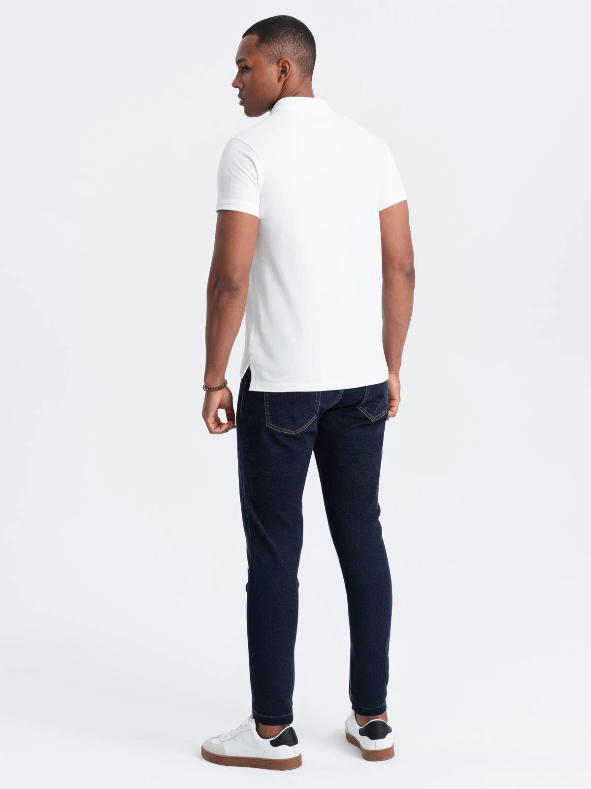 Jednym ze sprawdzonych klasyków stylu smart casual jest z pewnością męska koszulka polo. To basic, który sprawdza się jako zamiennik koszuli w kompozycjach wyjściowych, a także podkreśli outfity w konwencji sportowej. Polo jest wykonane w stu procentach z bawełnianej dzianiny pique, dzięki czemu jest niezwykle przewiewna i odprowadza wilgoć. Prosty, lekko wydłużony krój z cięciami po bokach dopasuje się do zróżnicowanych męskich sylwetek. Jednolita kolorystyka sprawdzi się zarówno jako kontrastowy element stylizacji jak i w kompozycjach w konwencji total look.