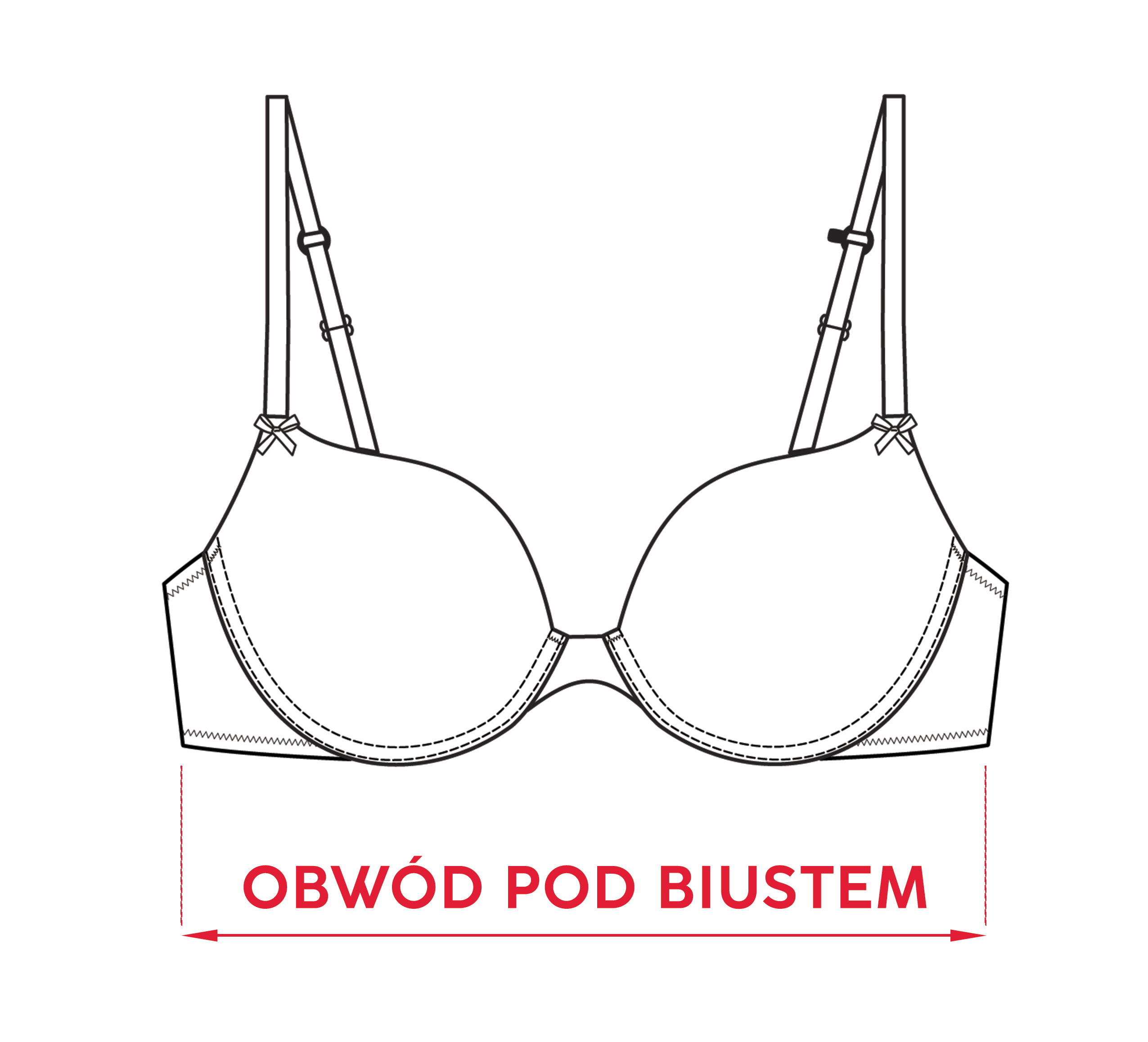 Obwód pod biustem mierzymy poziomo na całym obwodzie pod piersiami w wyprostowanej pozycji