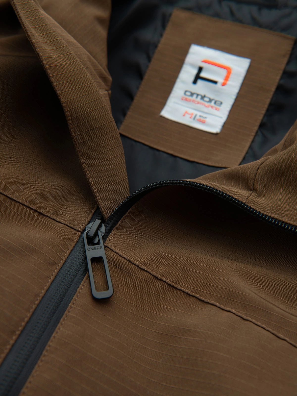 - lekka męska kurtka typu sztormiak ze stójką i kapturem