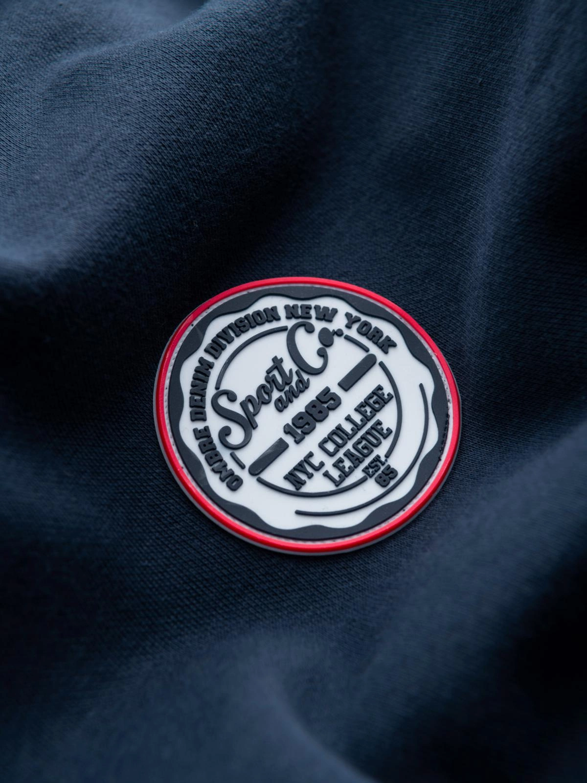 - kontrastowa gumowa naszywka na piersi z logotypem w stylu college
