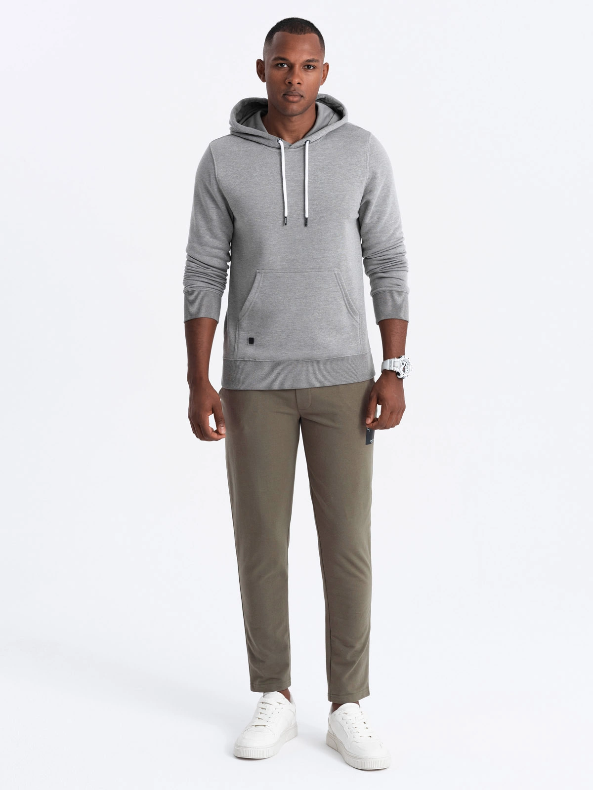 Spodnie dresowe z kolekcji Ombre Eximio to dowód na to, że proste, sprawdzone rozwiązania zawsze są w modzie. Ten model sprosta oczekiwaniom mężczyzn poszukujących stylowych ubrań, nie rezygnując przy tym z wygody. Bawełniana dzianina z dodatkiem spandexu oraz elastyczny regulowany pas dostosowuje się do kształtu ciała, dzięki temu będzie odpowiedni dla zróżnicowanych typów sylwetek. Całość podkreślają przykuwające oko kontrastowe detale, nadające spodniom unikalnego charakteru.