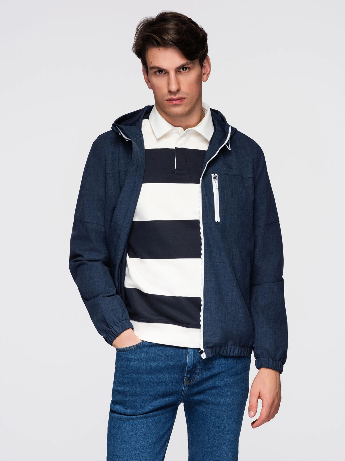 Melanżowa kurtka w klimacie żeglarskim przypadnie do gustu wielbicielom stylu outdoorowego. Miękka polarowa podszewka daje komfort noszenia podczas zmiennej pogody, skutecznie utrzymując temperaturę. Za funkcjonalność kurtki odpowiadają także wygodne zapinane kieszenie oraz kaptur z możliwością regulacji. Kurtka jest lekka i pakowna – bez problemu zmieści się w plecaku lub torbie podróżnej.