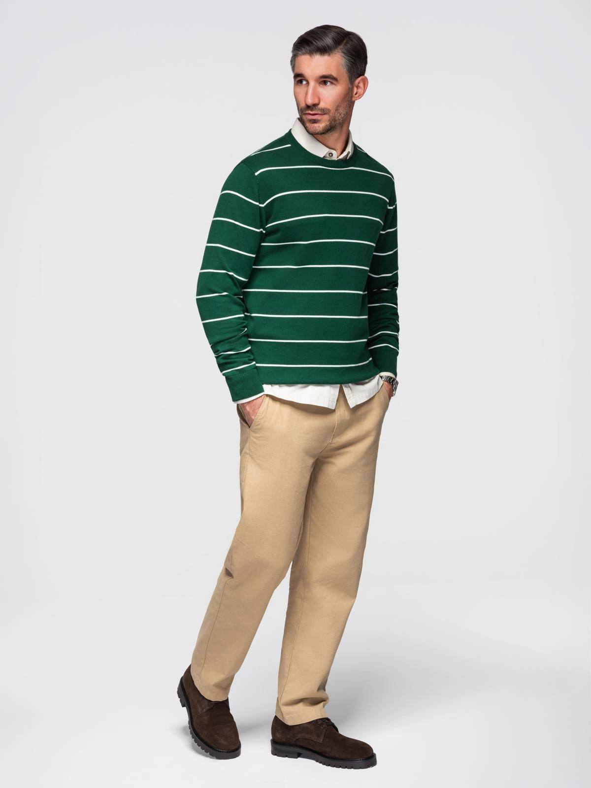 Ponadczasowa klasyka, którą pokochało wielu mężczyzn! Sweter w dwukolorowe paski niezmiennie kojarzy się ze stylem codziennym. To prosty sposób na urozmaicenie stonowanych zestawów – nieregularny deseń skutecznie przyciąga wzrok, nadając luźny ton kompozycji. Miły w dotyku materiał z mieszanych włókien zapewnia komfort oraz pełną swobodę ruchów.