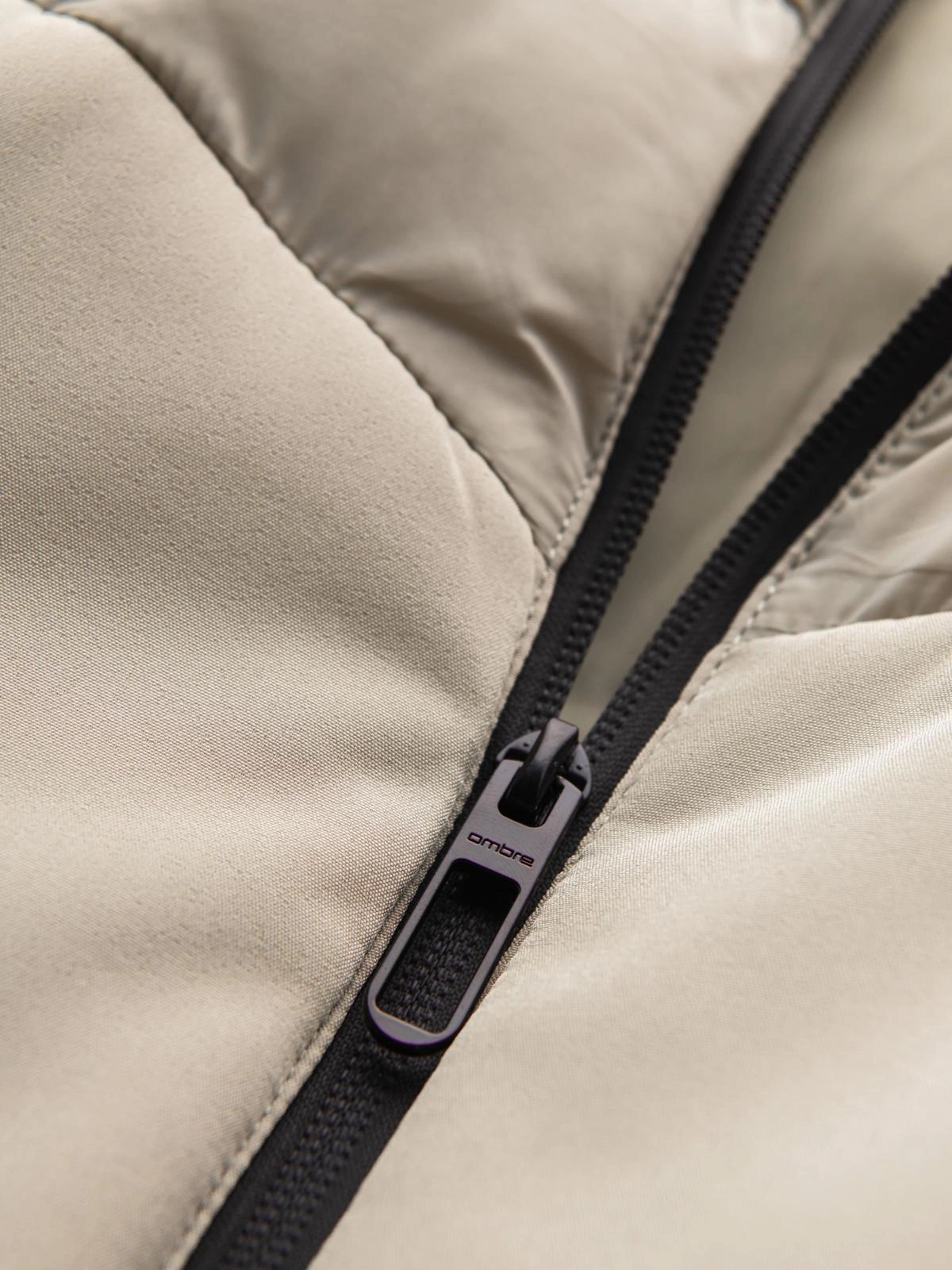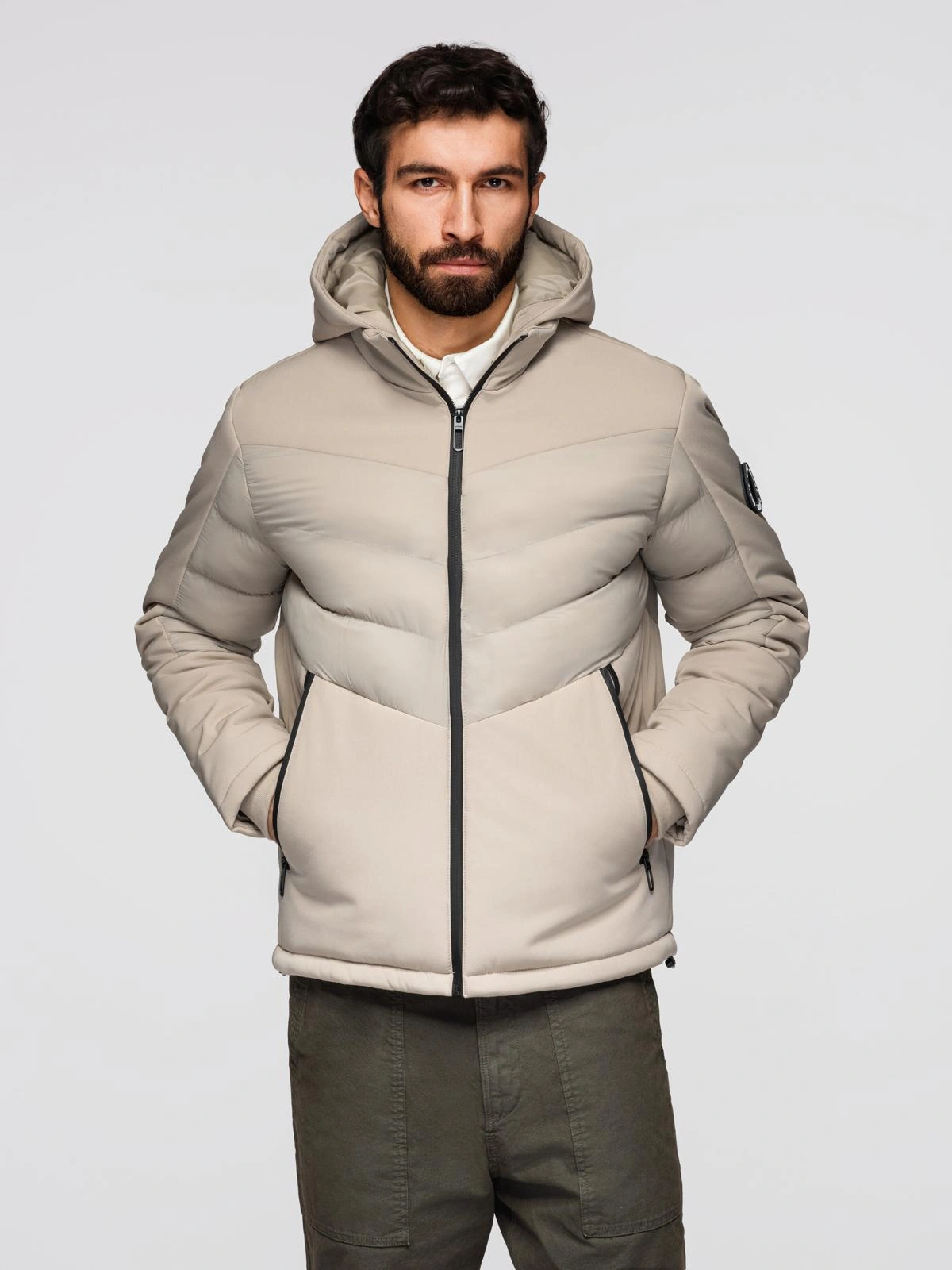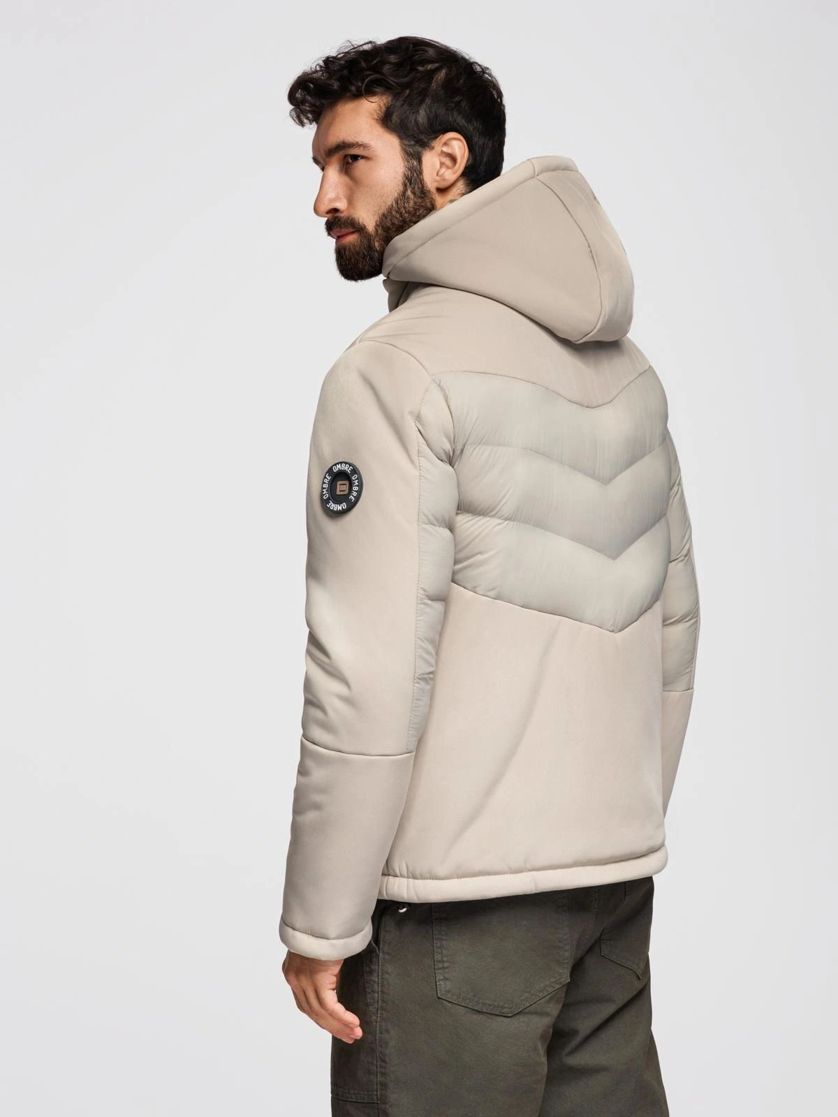 Pikowana kurtka męska w stonowanych kolorach spodoba się miłośnikom prostoty i funkcjonalności. Wysoki kołnierz oraz lekkie syntetyczne wypełnienie skutecznie chronią przed chłodem, co przedkłada się na komfort noszenia. Kurtkę można założyć do codziennych i sportowych outfitów – dowolność stylizacji zapewnia odpinany kaptur. Gumowa naszywka przymocowana na rzep nadaje kurtce unikalnego charakteru.