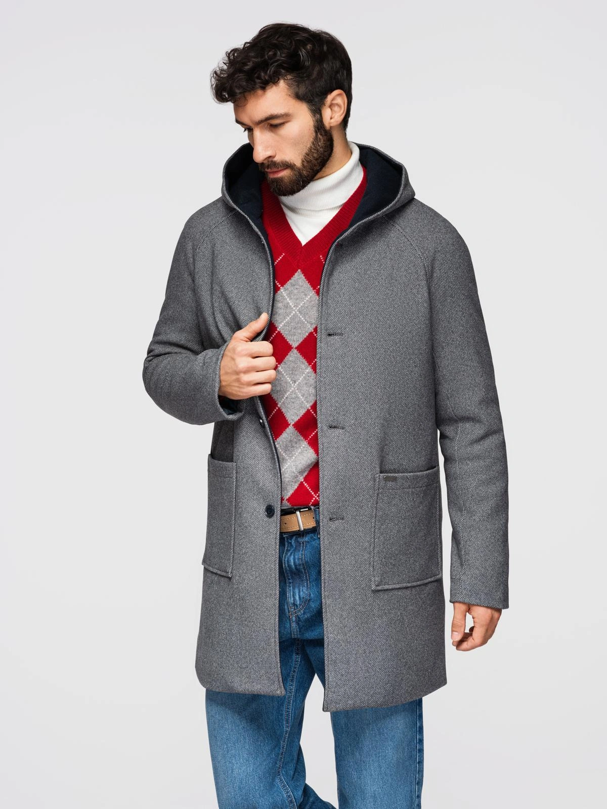 - męski płaszcz w stylu garniturowym