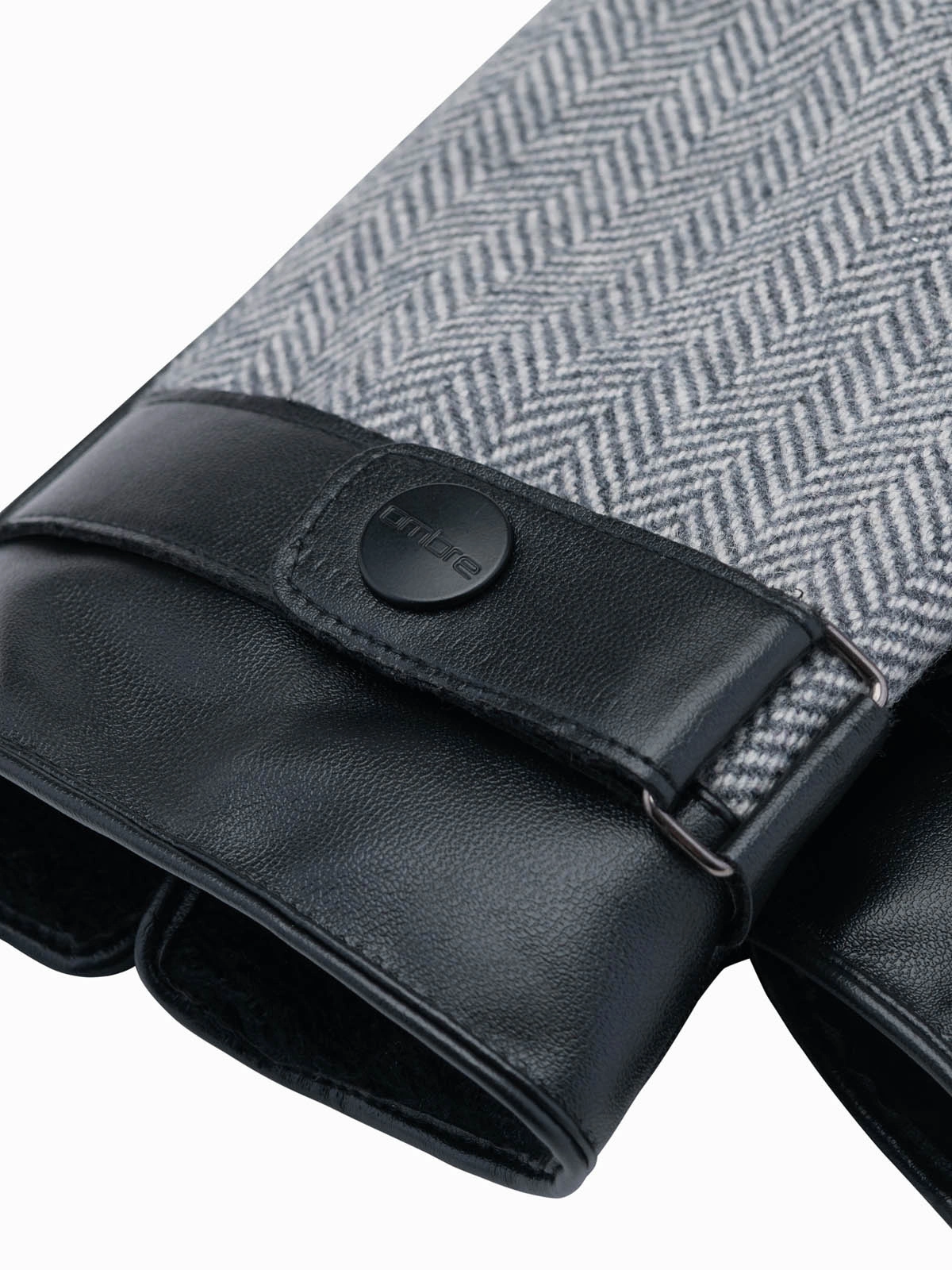 - Tkany materiał w jodełkę na wierzchniej stronie rękawiczki