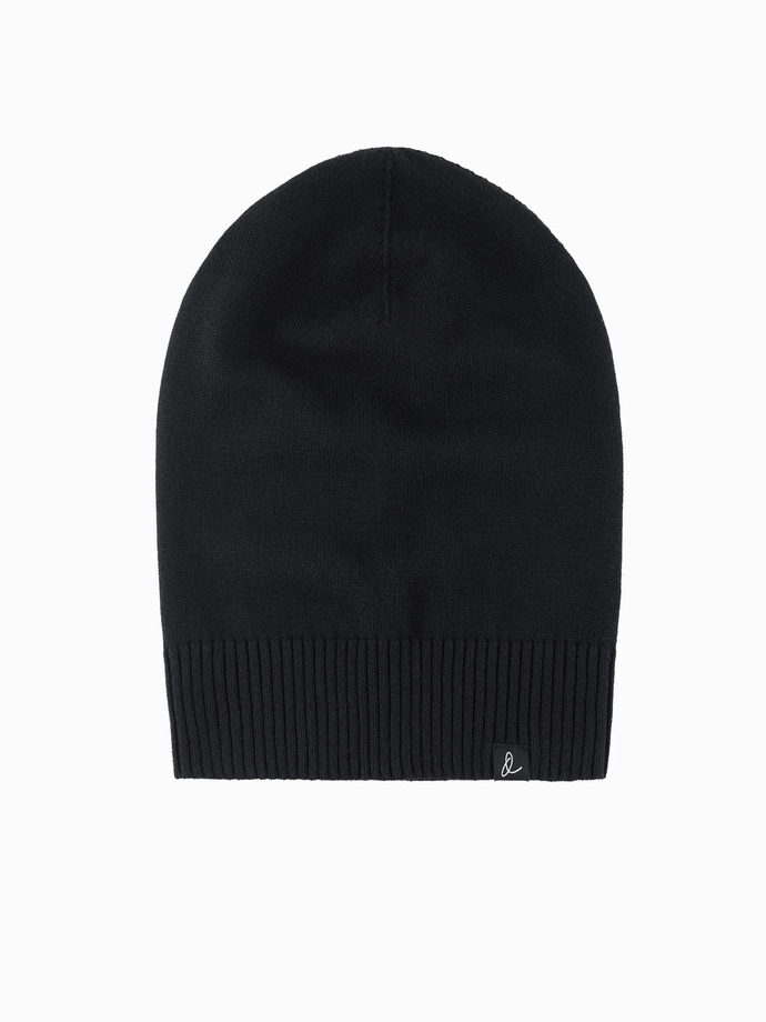 Męska zimowa czapka beanie z bawełnianej dzianiny – czarna V1 OM-ACWH-0124