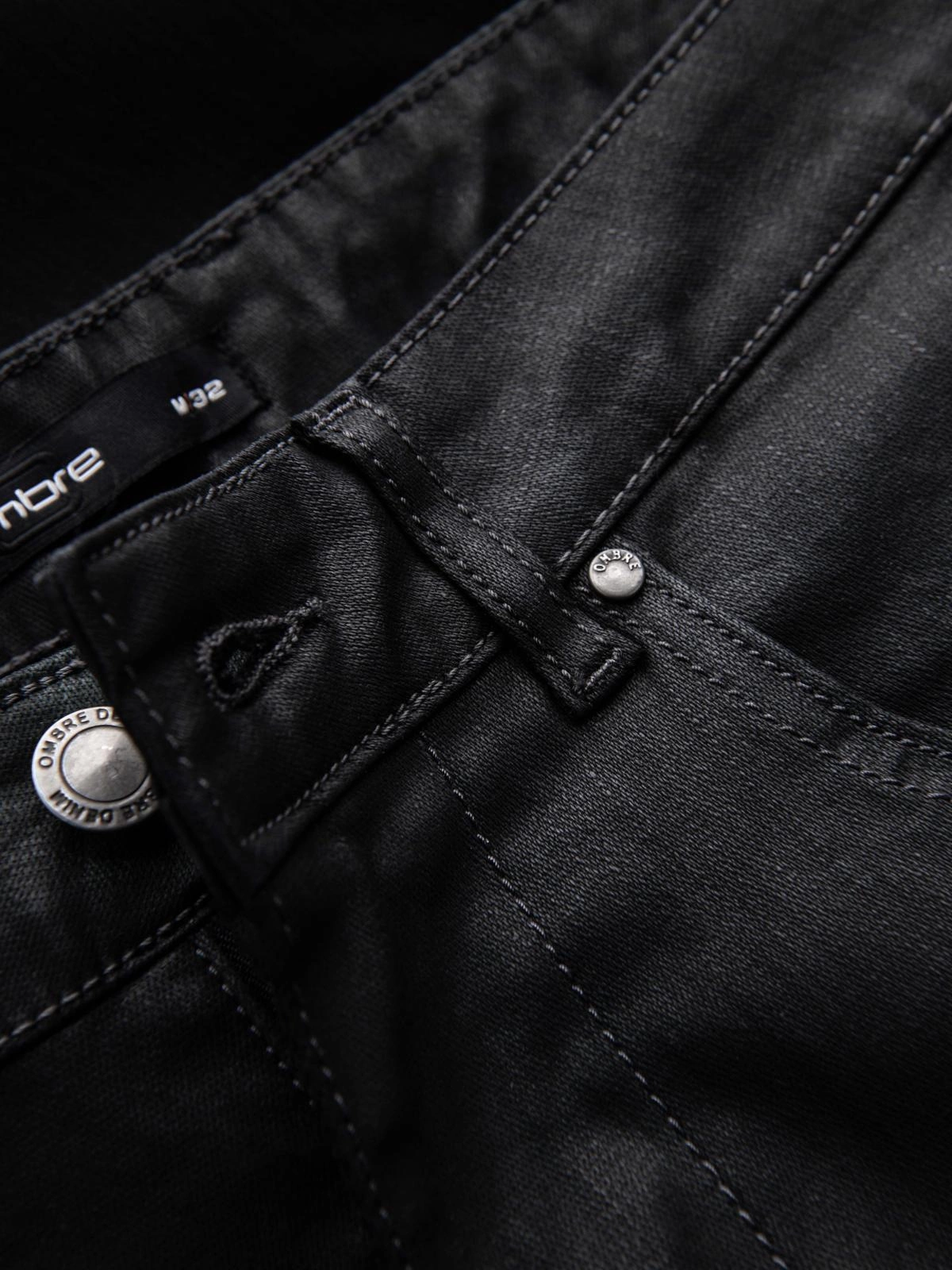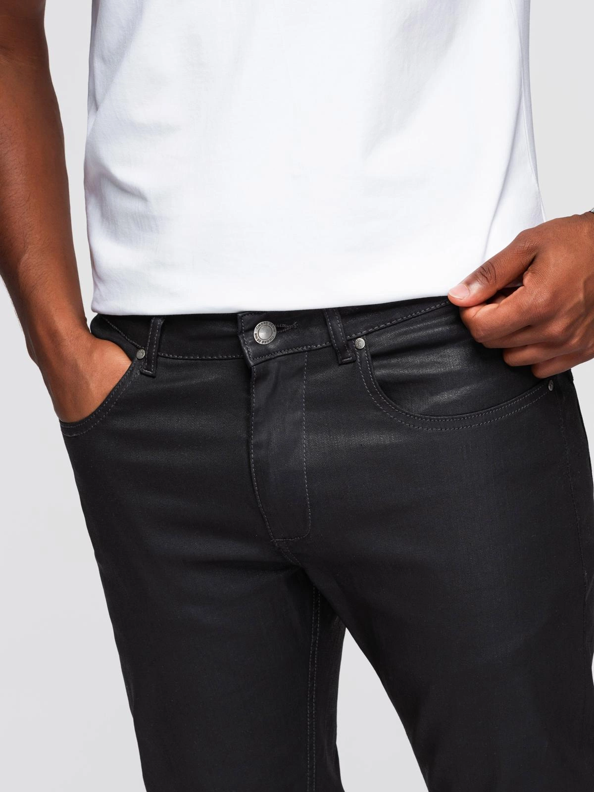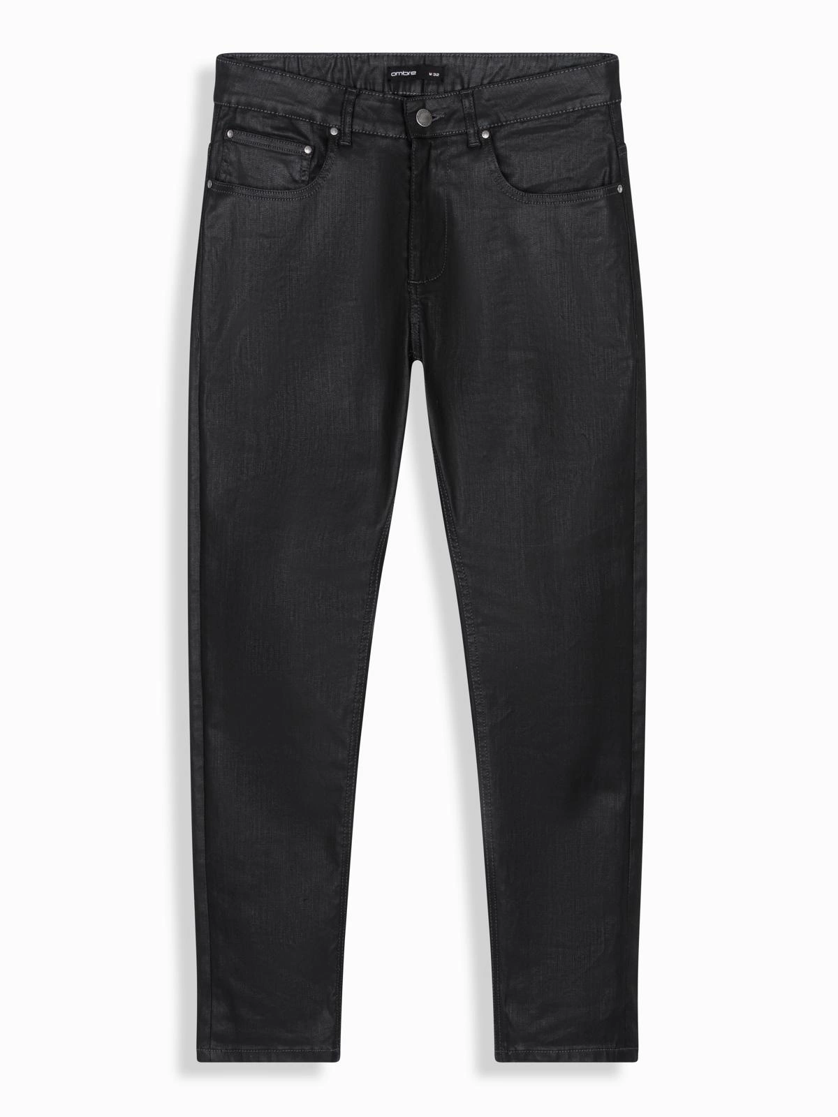 - jeans z efektem woskowania o błyszczącym wykończeniu
