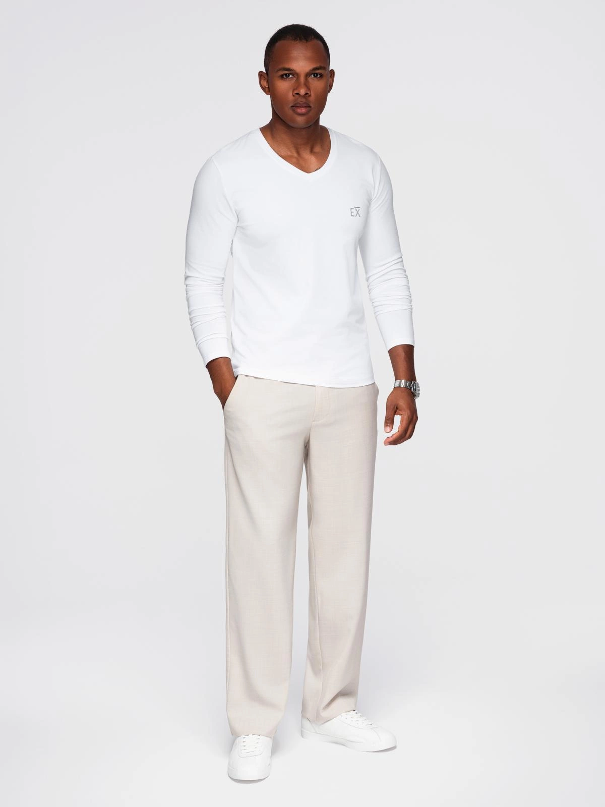 Longsleeve z dekoltem w serek sprawdza się jako klasyczny element zestawów casualowych. Ponadczasowe rozwiązania zawsze znajdą zastosowanie w męskich szafach, a ten model z kolekcji Ombre Eximio jest tego najlepszym przykładem. Dzianina o gładkiej fakturze jest przyjazna dla skóry, zapewniając pełen komfort i swobodę noszenia na co dzień. Materiał swobodnie układa się na ciele dzięki domieszce elastanu w składzie, łatwo dopasowując się do zróżnicowanych sylwetek.