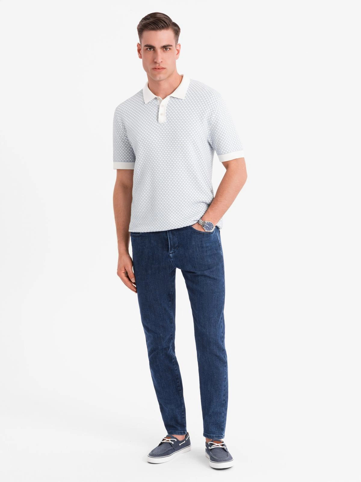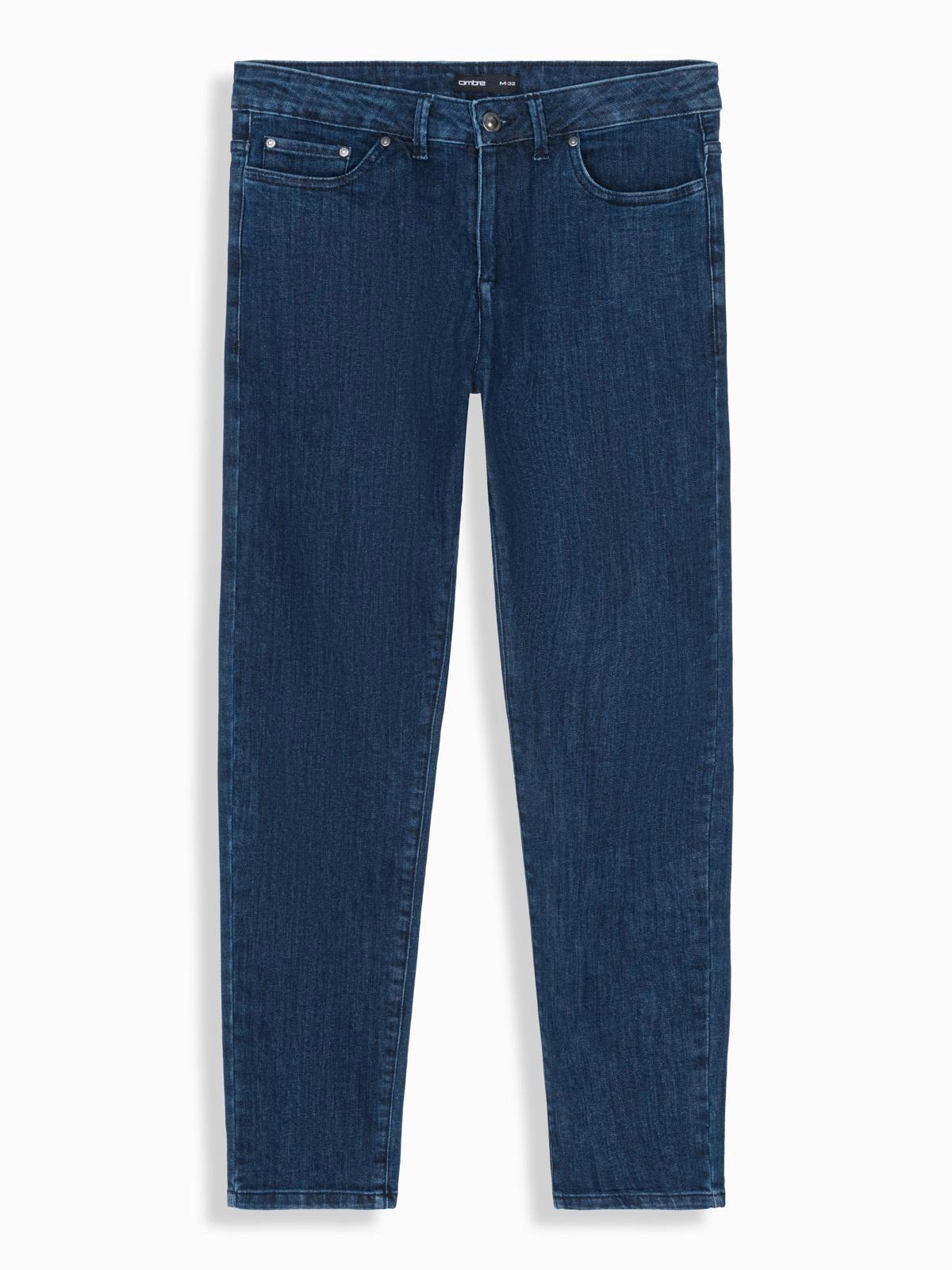 Slimowane jeansy z kolekcji Ombre Denim to propozycja dla fanów klasyki. Gładki, jednolity jeans bez przetarć sprawia, że spodnie zyskują uniwersalne zastosowanie, szczególnie w casualowych outfitach. Spodnie są wygodne w zakładaniu, gdyż elastyczny materiał dostosowuje się do kształtu sylwetki. Dopasowany krój podkreśla figurę, subtelnie eksponując jej atuty.