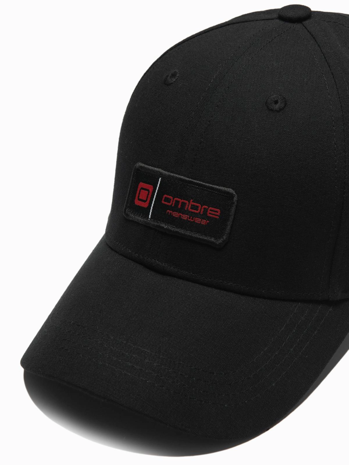 Męska czapka z daszkiem bejsbolówka z patchem – czarna V1 OM-ACCS-0103