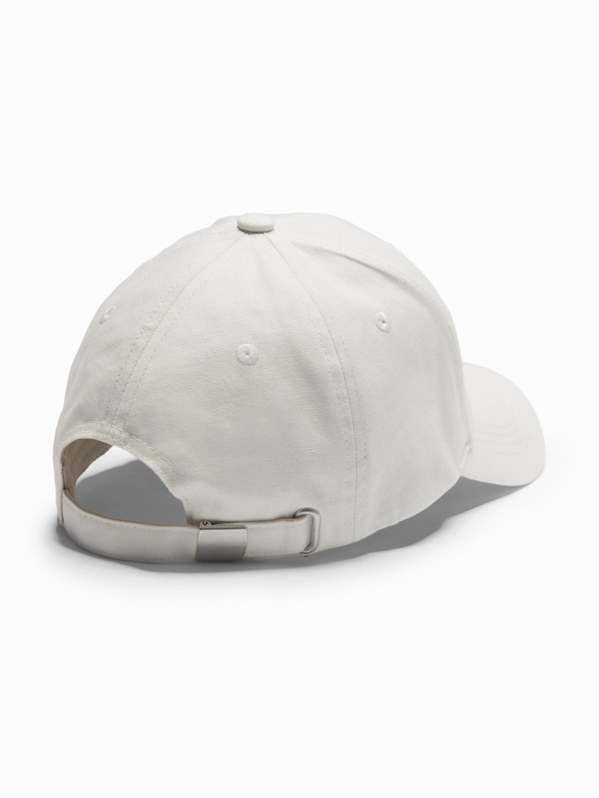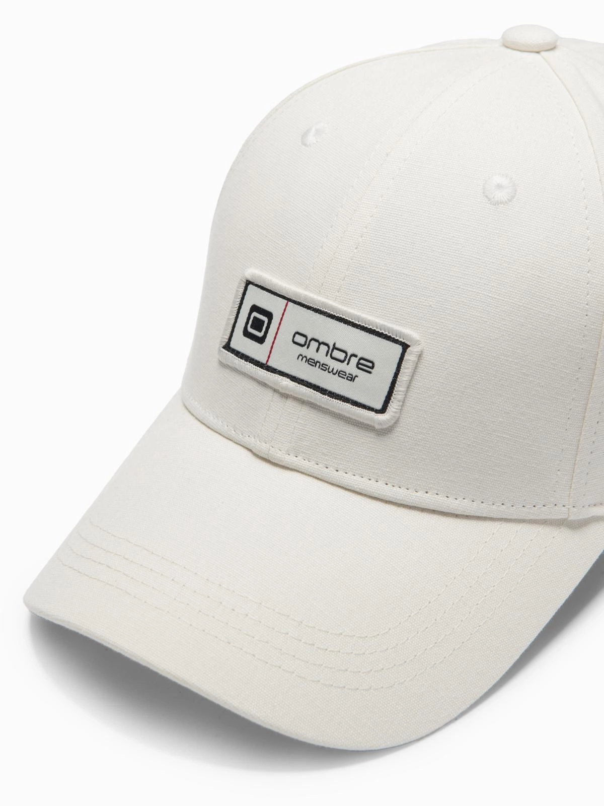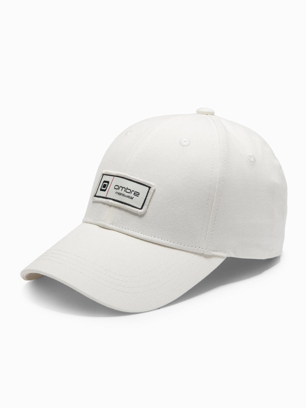 Czapka męska bejsbolówka z daszkiem i patchem – kremowa V4 OM-ACCS-0103