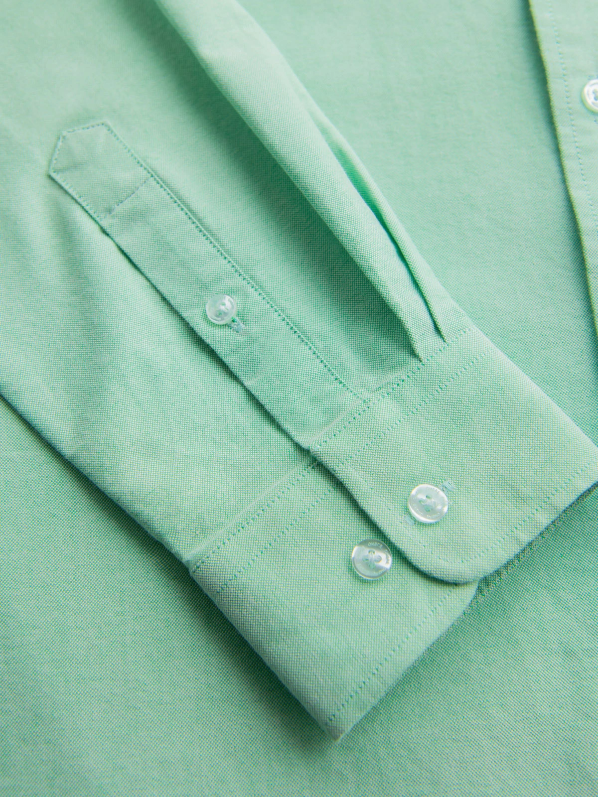 Bawełniana koszula oksfordzka w pastelowych kolorach z pewnością ożywi eleganckie i półformalne stylizacje. Prosty krój z zaokrąglonym dołem oraz swobodna regulacja rękawów pozwoli ją łatwo dopasować do wygody i potrzeb mężczyzn. Tkanina o wyraźnym charakterystycznym splocie subtelnie zdobi koszulę, dodając jej klasy. To idealny wybór do zestawów utrzymanych w klasycznej kolorystyce.