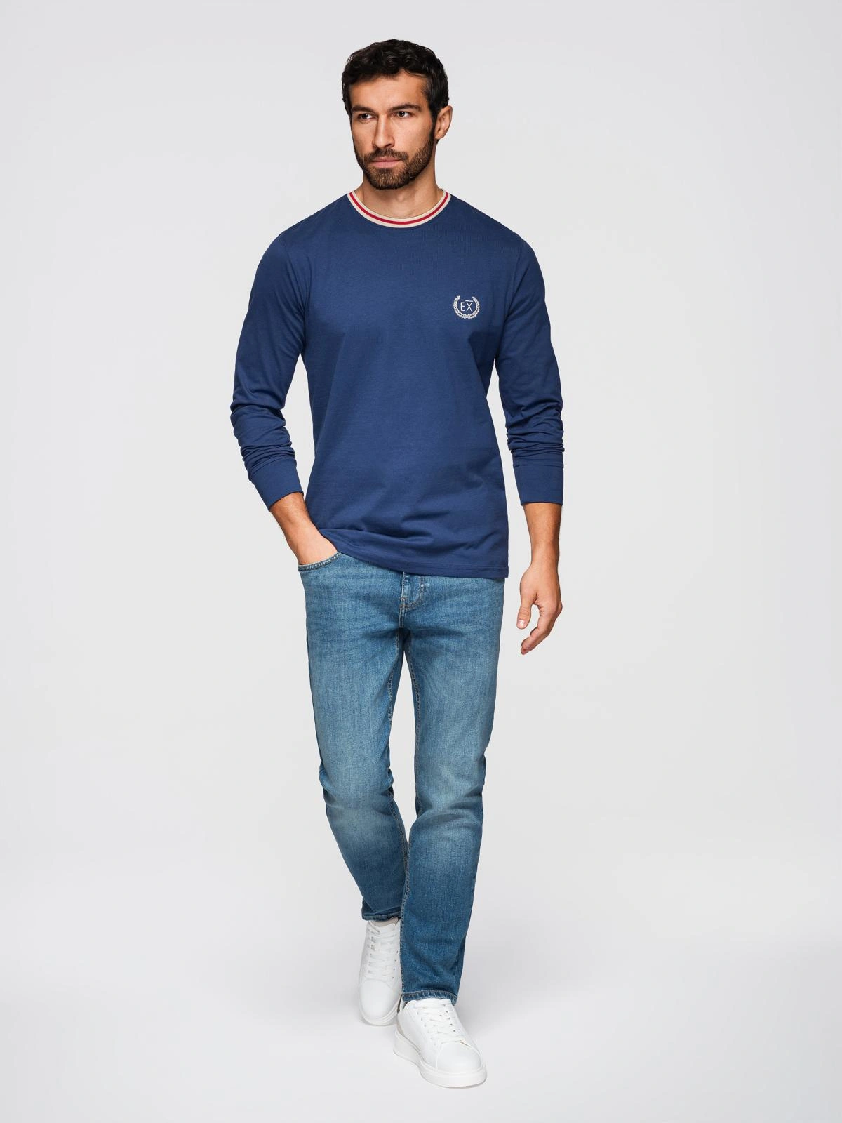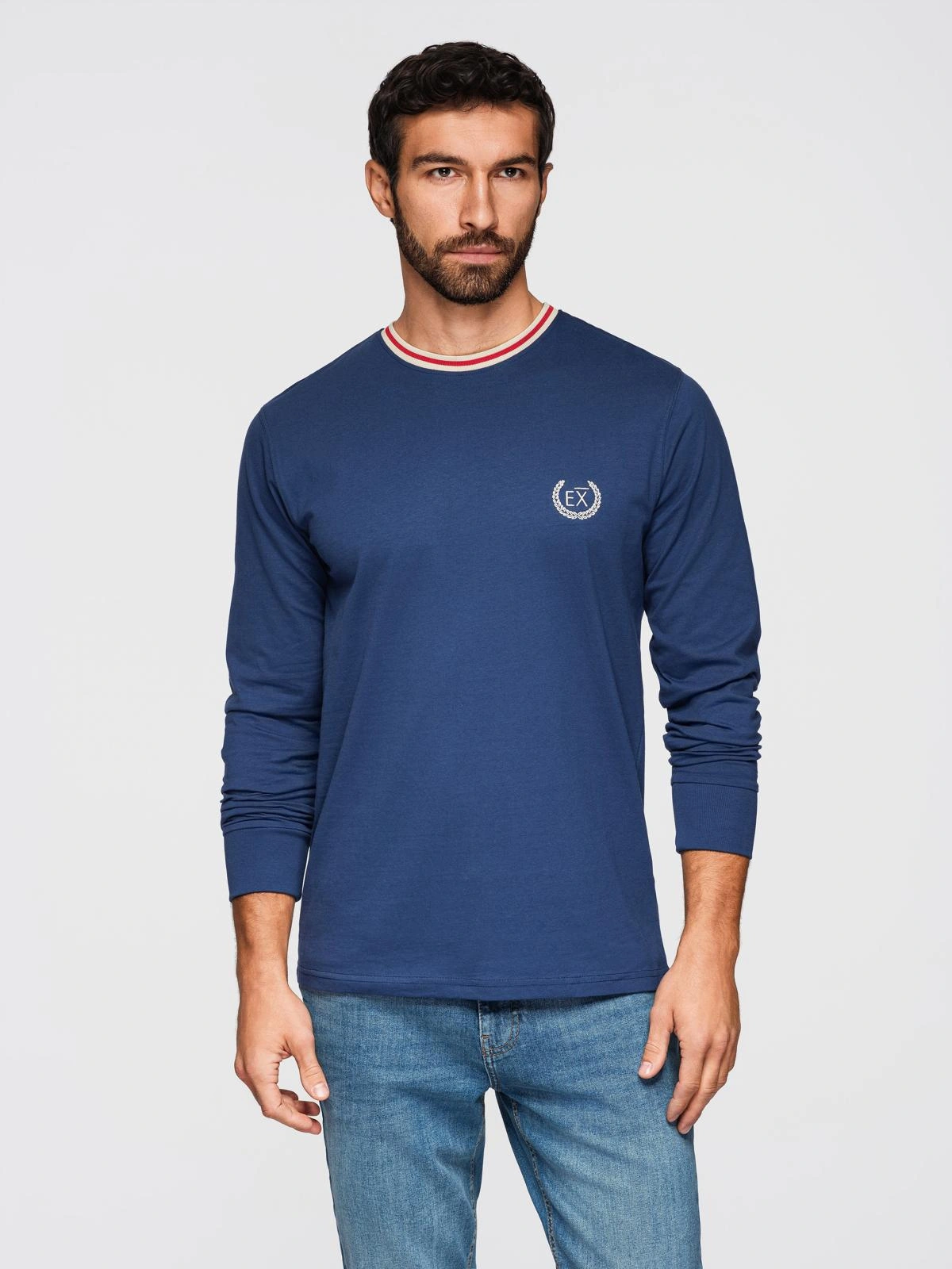 Ten longsleeve z kolekcji Ombre Eximio wyróżnia charakterystyczny dekolt w paski oraz dopasowany kolorystycznie haft na piersi. Wyrazisty design nawiązuje do obecnie trendującej estetyki sportowej elegancji. Koszulka jest prosta w stylizacji – świetnie pasuje zarówno do jeansów, jak i do spodni chino. Dobrze układa się na ciele oraz swobodnie się nosi dzięki miłej w dotyku bawełnianej dzianinie.