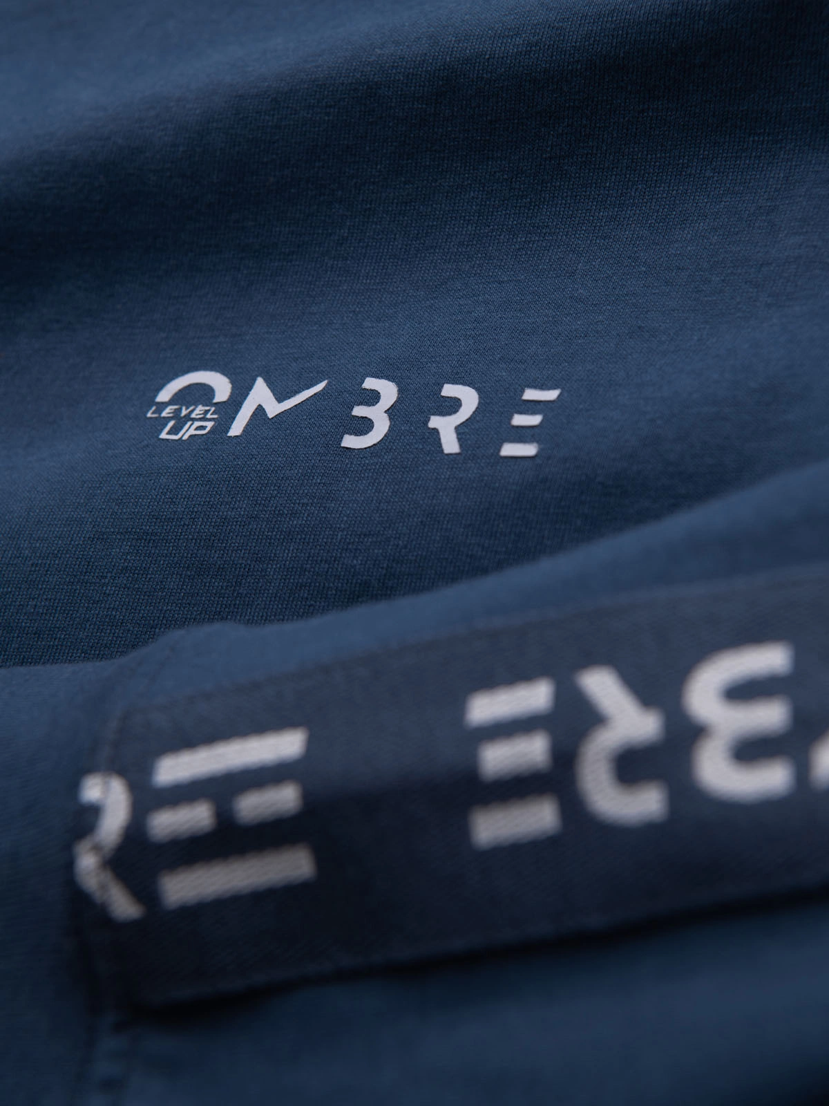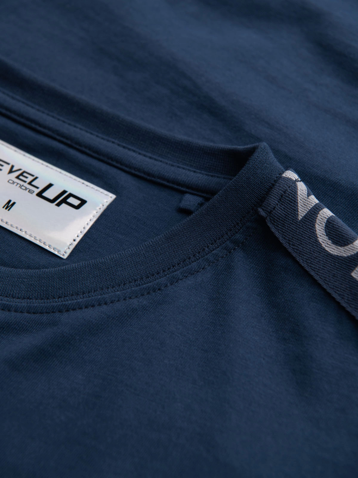 Bawełniany longsleeve męski U-neck z lampasami i nadrukiem na piersi – ciemnoniebieski V1 OM-LSCL-0127