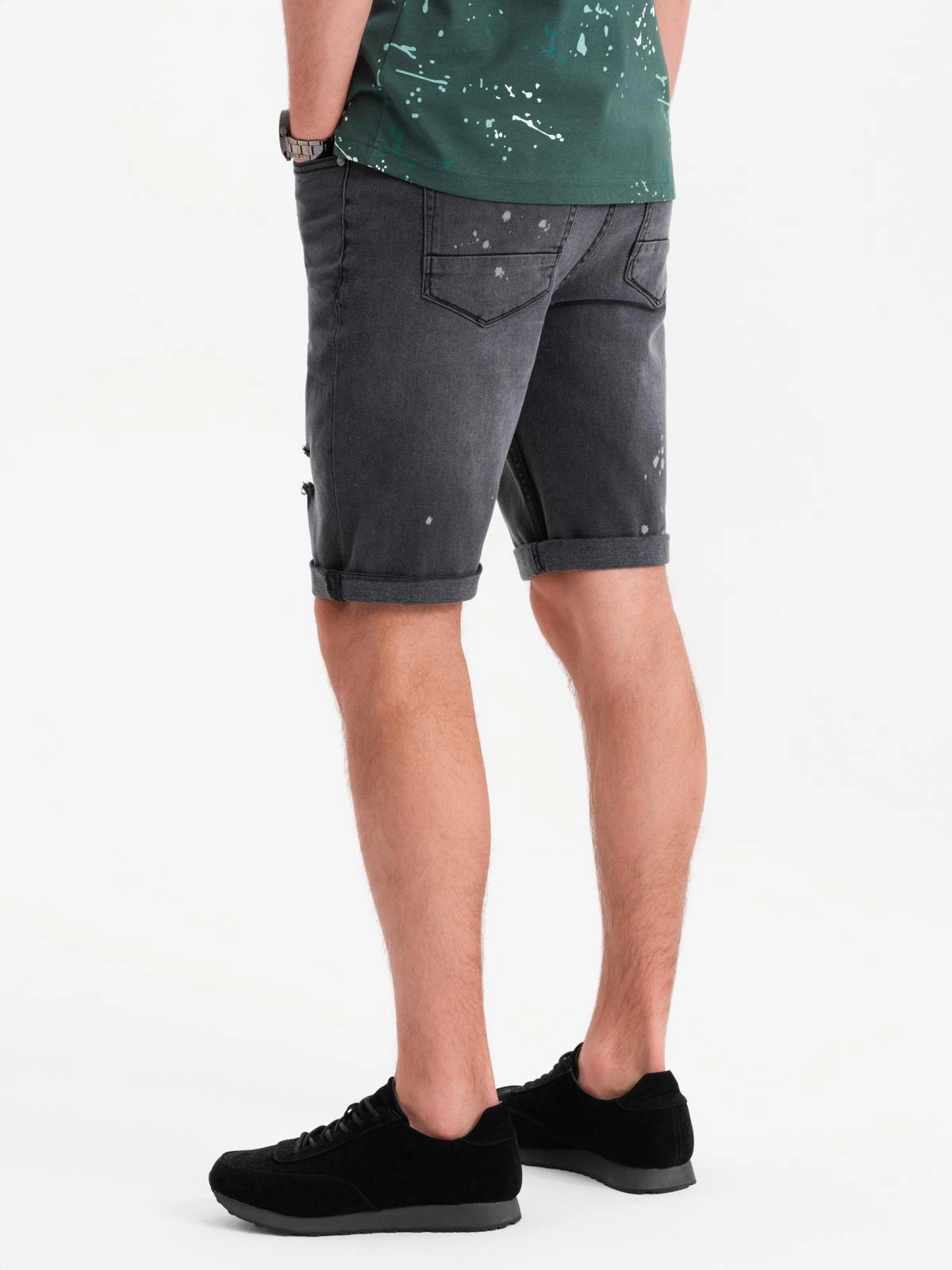 Te denimowe męskie szorty z podwiniętą nogawką to esencja letniego luzu z nutą charakteru. Efekt sprania, przetarcia i dekoracyjne nakrapiania nadają im wyjątkowego, miejskiego stylu. Wygodny fason i elastyczna bawełna sprawiają, że sprawdzą się idealnie na co dzień. To propozycja dla mężczyzn ceniących wygodę w nowoczesnym wydaniu.
