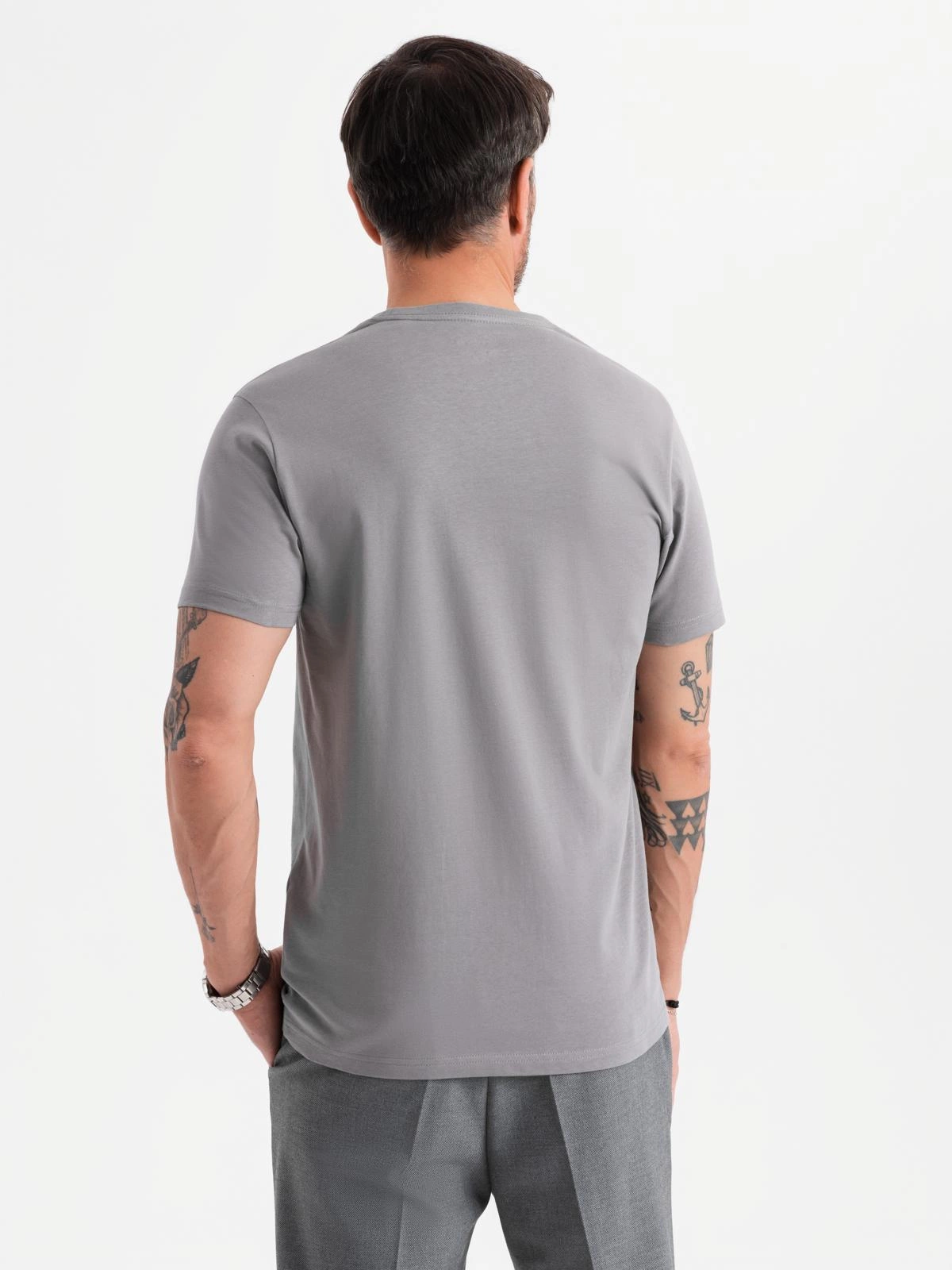 Jednobarwny t-shirt o klasycznym kroju będzie uniwersalną bazą do codziennych zestawów. Zróżnicowany wybór wariantów kolorystycznych sprosta oczekiwaniom mężczyzn poszukujących klasycznych fasonów do swojej garderoby. Ma prosty krój, który zapewnia swobodę ruchów, swobodnie układając się na sylwetce. Miły w dotyku bawełniany jersey dodaje koszulce delikatności, co docenią szczególnie osoby o wrażliwej skórze.