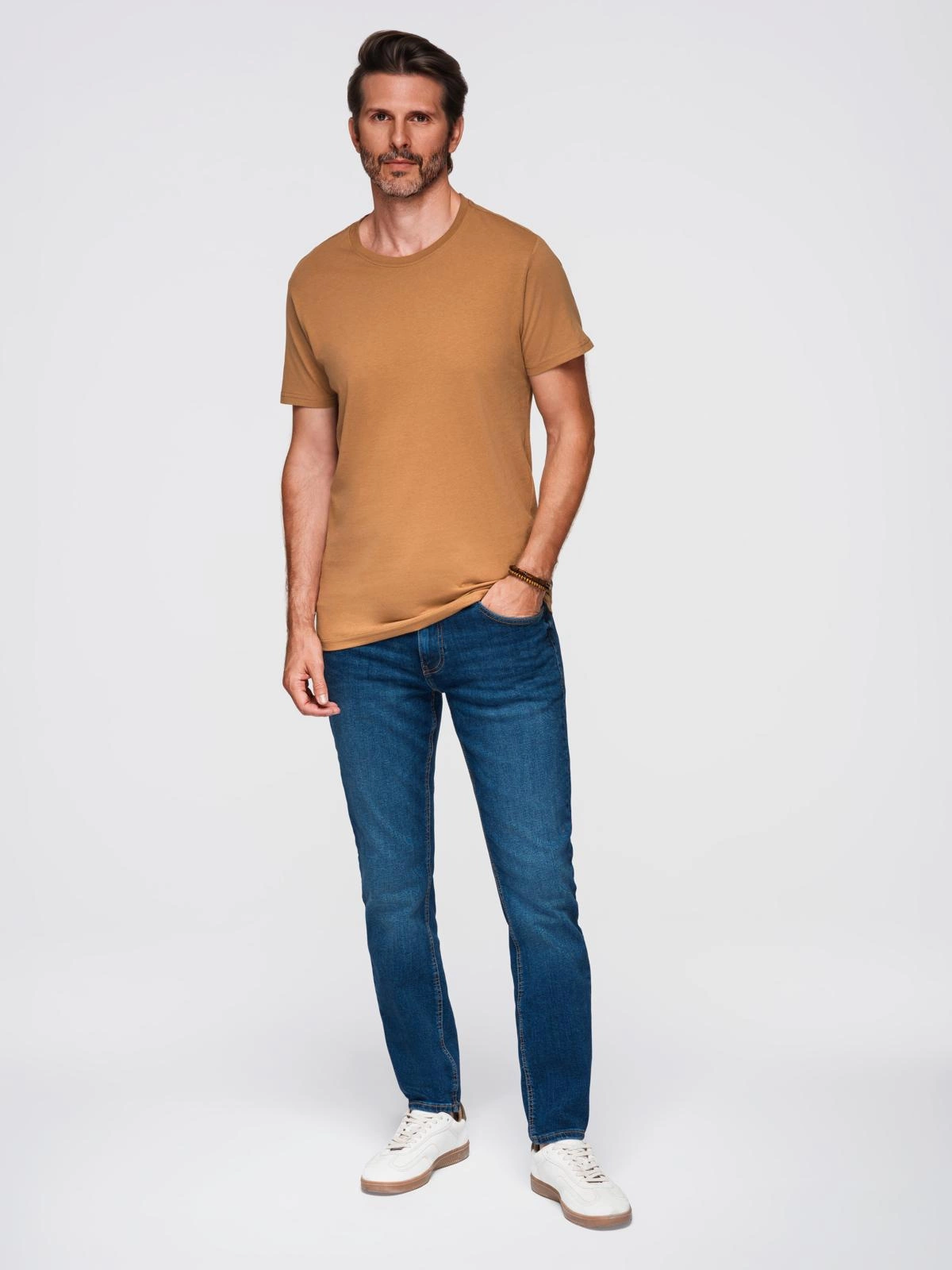 Klasyczny T-shirt męski bawełniany BASIC - granatowy V2 OM-TSBS-0236