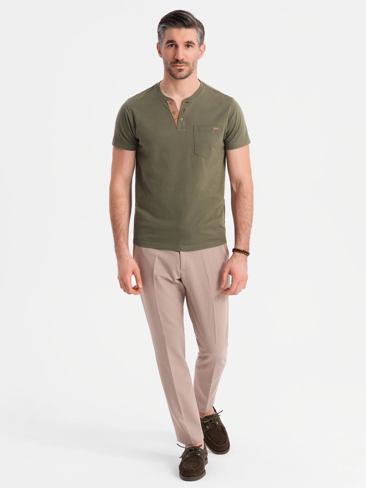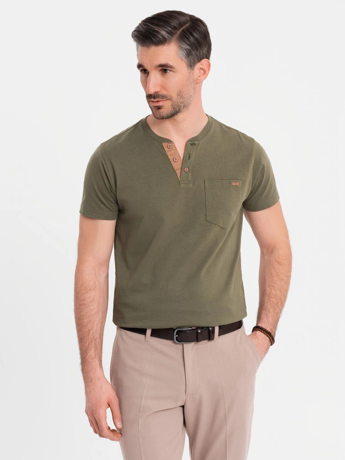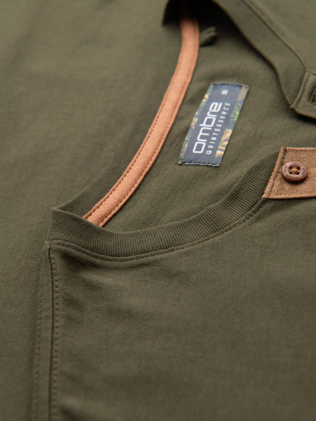 Wyróżnij się detalem – ten T-shirt z kolekcji Quintessence łączy klasyczną formę z modowymi akcentami. Kontrastowe wykończenie dekoltu z imitacji zamszu oraz skórzany patch na kieszeni dodają mu charakteru, zachowując jednocześnie codzienny, casualowy styl. To model dla mężczyzn, którzy zwracają uwagę na detale i cenią wygodę wysokiej jakości dzianiny bawełnianej.