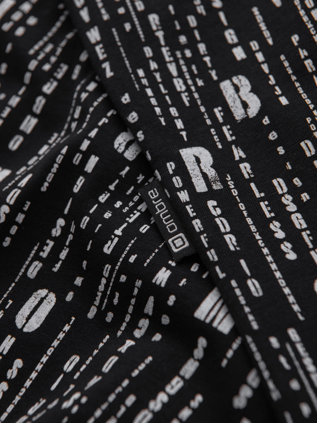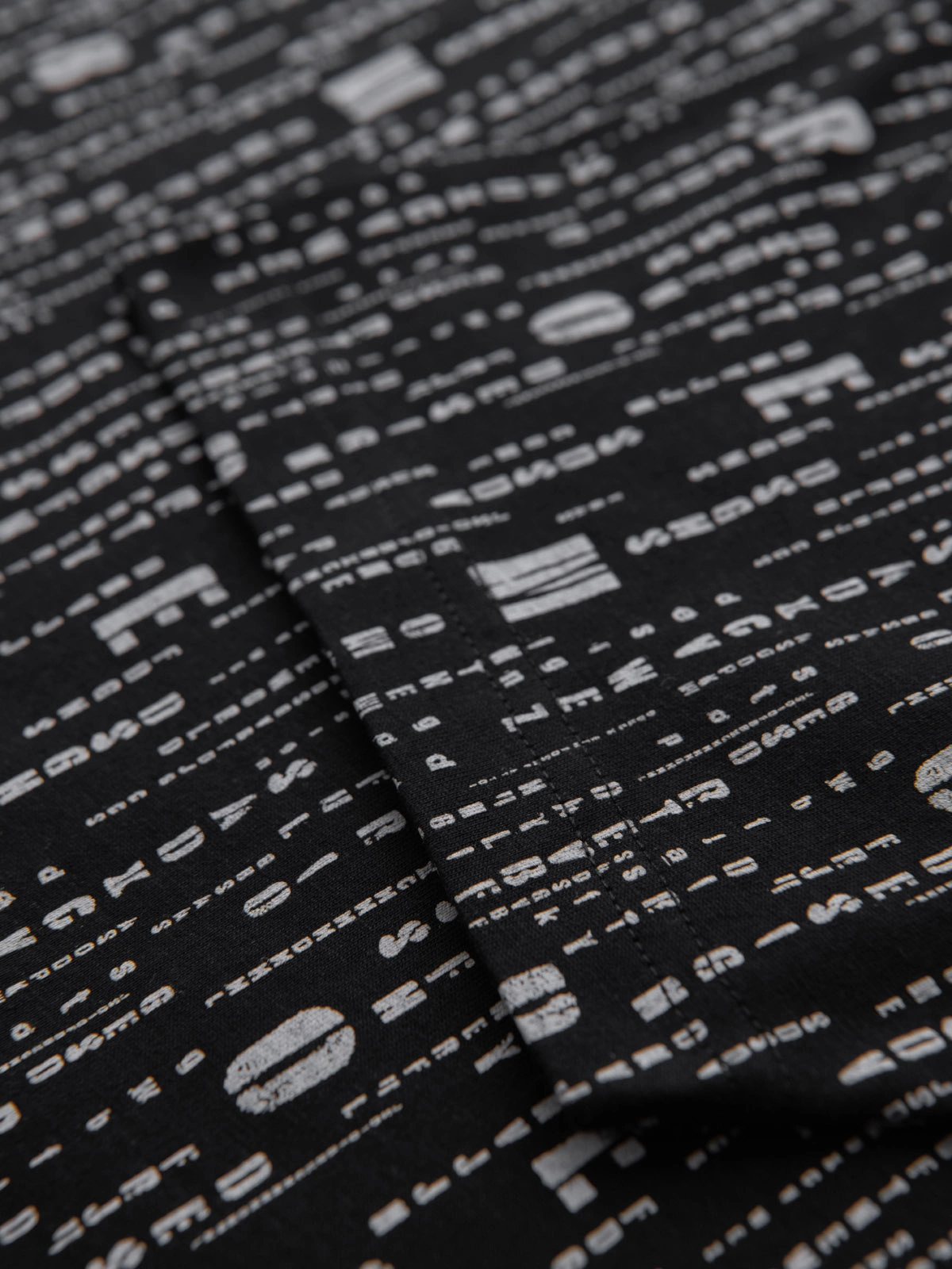 Ten T-shirt przyciąga uwagę unikalnym, dynamicznym nadrukiem, który pokrywa całą jego powierzchnię. Klasyczny krój z krótkim rękawem i zaokrąglonym dekoltem to gwarancja codziennej wygody. Gładka struktura dzianiny bawełnianej sprawia, że koszulka prezentuje się nowocześnie i lekko.