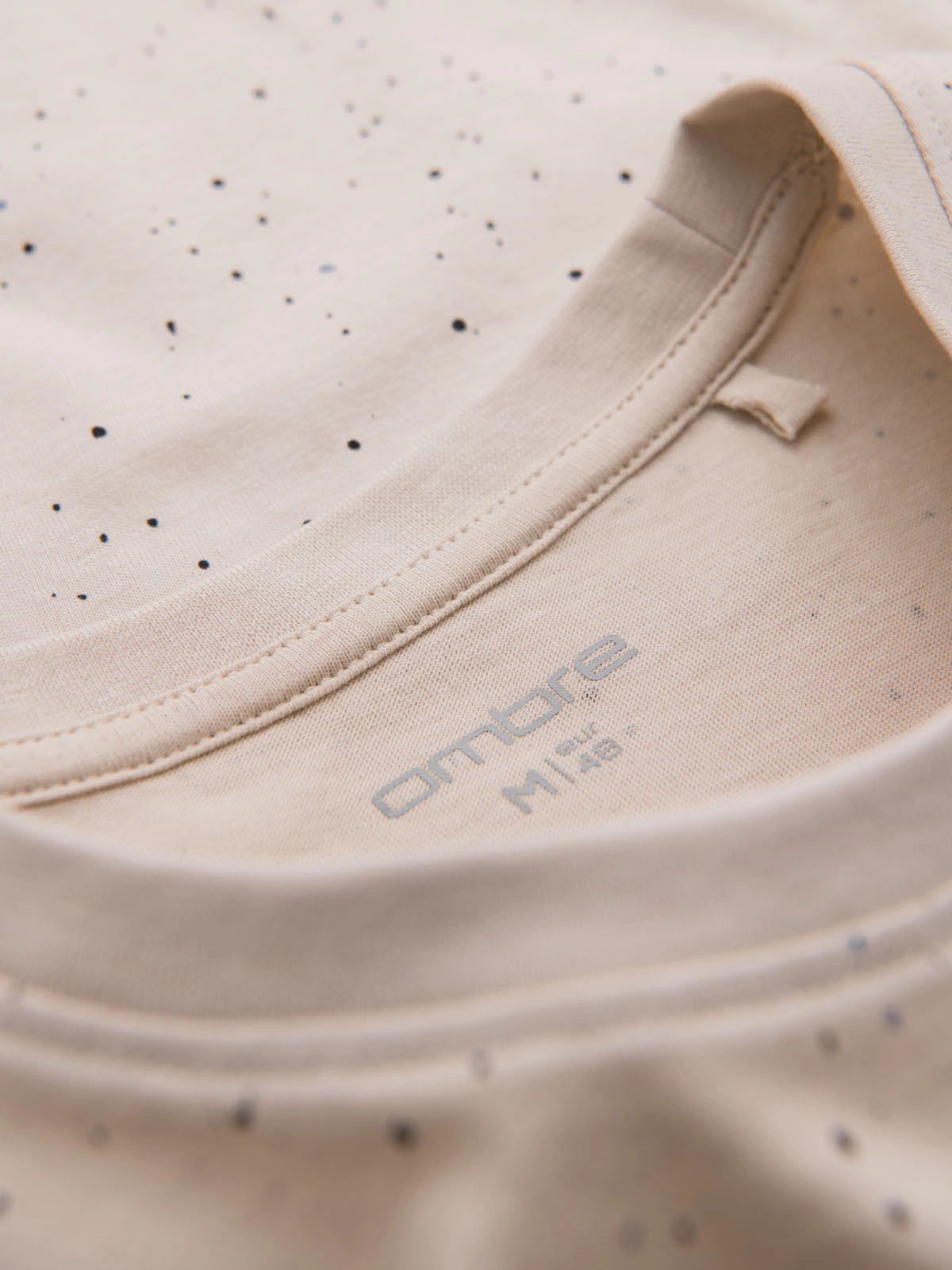 Wzbogać swoją codzienną garderobę o stylowy męski t-shirt z nadrukiem. Koszulka wykonana z wysokiej jakości bawełny czesanej gwarantuje komfort noszenia. Gładki materiał z nadrukiem oraz subtelna dekoracyjna metka dodają nowoczesnego charakteru. Idealny wybór na wiosenno-letnie stylizacje w miejskim stylu.