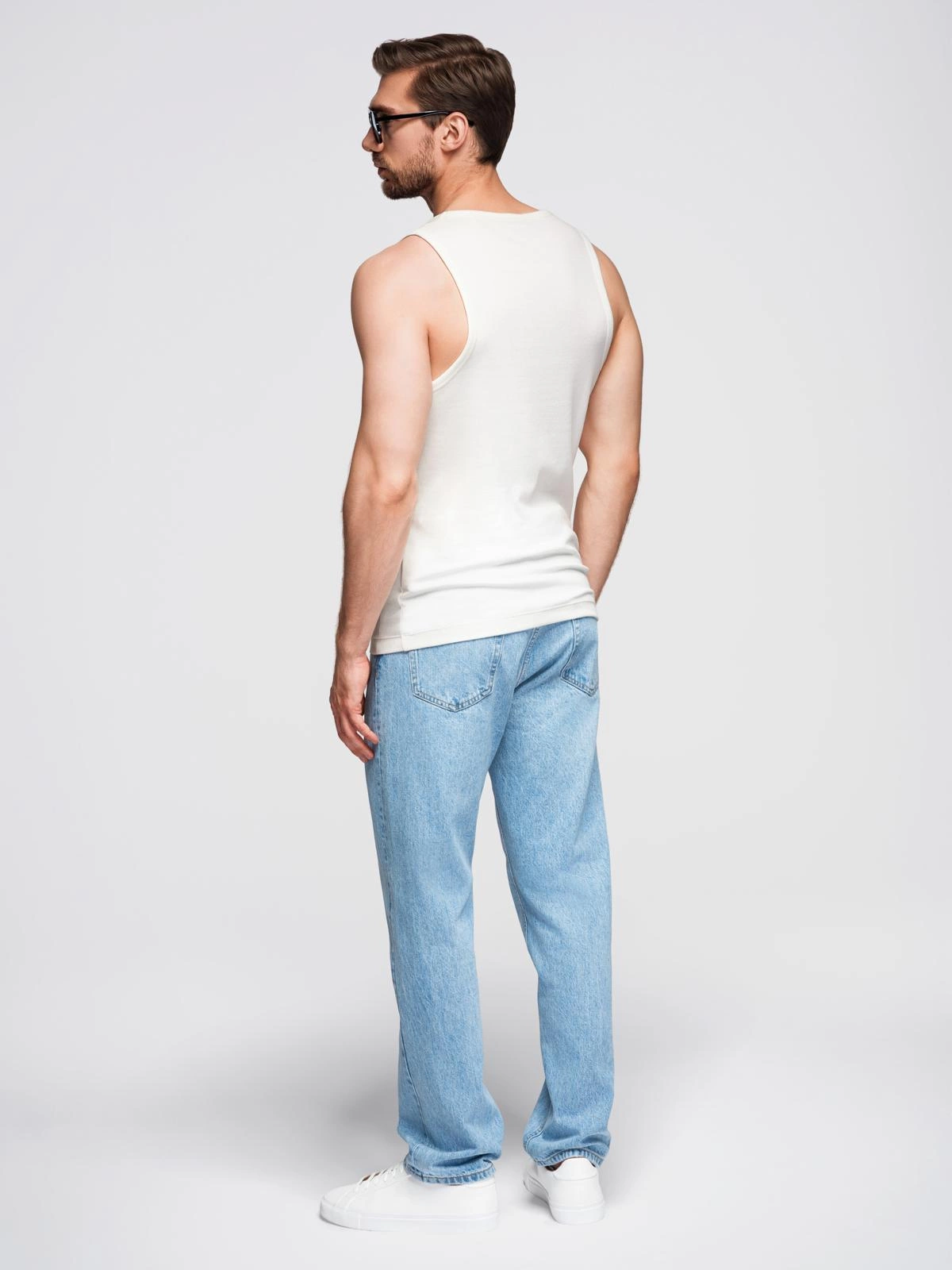 Męska koszulka na ramiączkach to minimalistyczna propozycja idealna na lato lub do noszenia pod innymi warstwami. Wykonana z elastycznej, prążkowanej dzianiny, świetnie dopasowuje się do sylwetki, zapewniając pełną swobodę ruchów. Subtelne detale, takie jak tkana metka na boku, podkreślają nowoczesny charakter produktu.