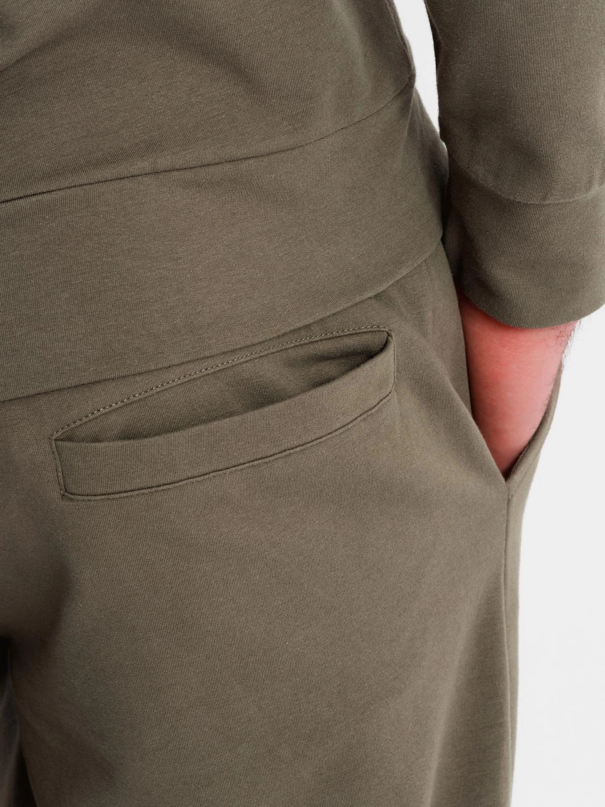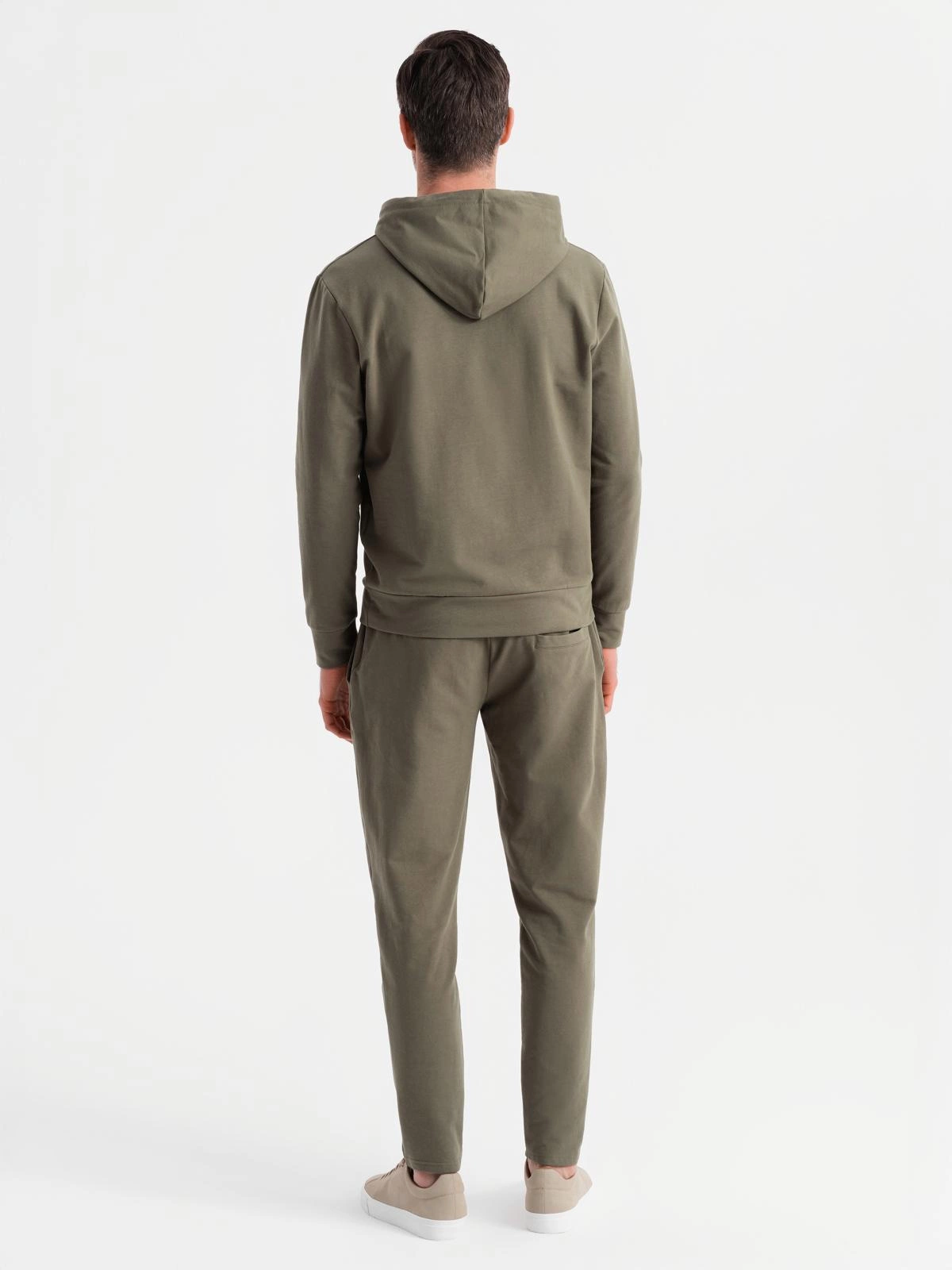 Ten komplet to idealna propozycja dla mężczyzn, którzy cenią nowoczesne połączenie stylu, jakości i wygody. Bluza kangurka z kolekcji Ombre Eximio przypadnie do gustu wielbicielom prostoty w stylu athleisure. Regularny krój i miękka dzianina interlock zapewniają komfort i pełną swobodę ruchów, co sprawia, że model doskonale sprawdzi się zarówno na co dzień, jak i w czasie aktywności. Detale przy kapturze, kontrastowy sznurek oraz wyrazisty logotyp na piersi przełamują stonowaną kolorystykę. Spodnie z tej samej kolekcji są równie wygodne i dopracowane – wyposażone w elastyczny pas ze ściągaczem i kontrastowe detale.