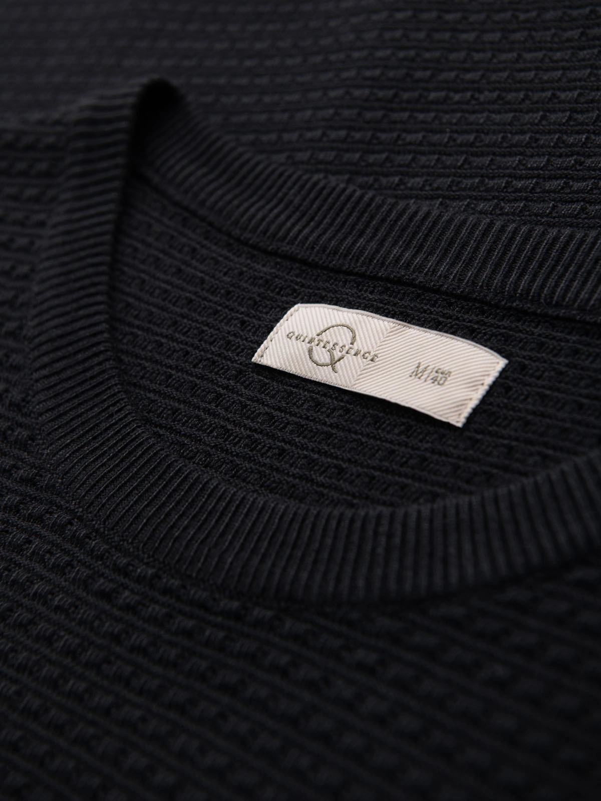 Minimalizm z twistem – ten t-shirt z linii Quintessence udowadnia, że prosta forma może iść w parze z wyrazistym designem. Charakterystyczna struktura dzianiny dodaje mu modowego wyrazu, zachowując jednocześnie uniwersalny charakter. Doskonale sprawdzi się w stylizacjach casualowych i półformalnych, podkreślając nowoczesny, męski styl. Świetny wybór na cieplejsze dni – lekki, oddychający i przyjemny dla skóry.