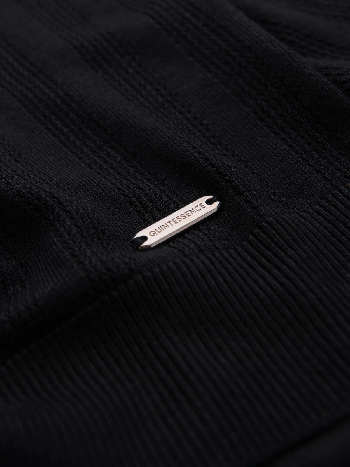 Koszulka z kolekcji QUINTESSENCE, która redefiniuje klasykę dzięki nowoczesnemu ażurowemu splotowi. Lekka i przewiewna konstrukcja doskonale sprawdzi się w cieplejsze dni, zapewniając maksymalny komfort i swobodę ruchów. Idealna do casualowych stylizacji, ale wystarczająco stylowa, by wyróżniać się w bardziej dopracowanych zestawach. Subtelny metalowy pin dodaje jej wyjątkowego charakteru.