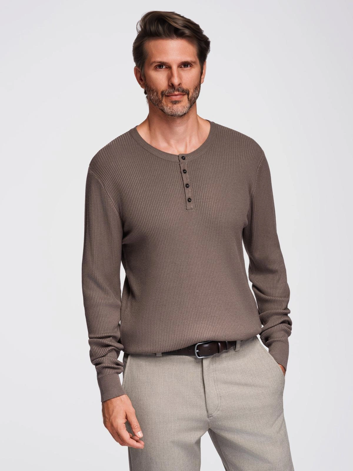Stylowy, a zarazem niezwykle wygodny męski sweter z linii QUINTESSENCE to propozycja, która łączy klasykę z subtelnym detalem. Dzięki guzikom przy dekolcie i charakterystycznej prążkowanej dzianinie ten model swetra przyciąga uwagę, a elastyczny materiał doskonale dopasowuje się do sylwetki, zapewniając swobodę ruchów przez cały dzień.