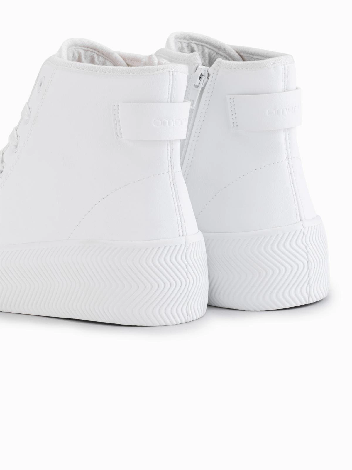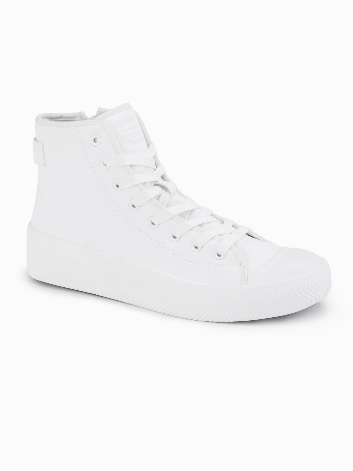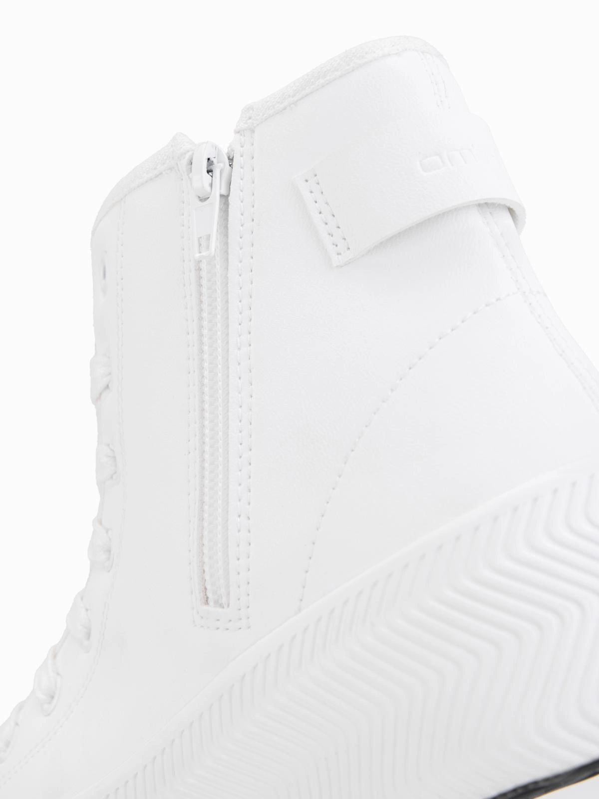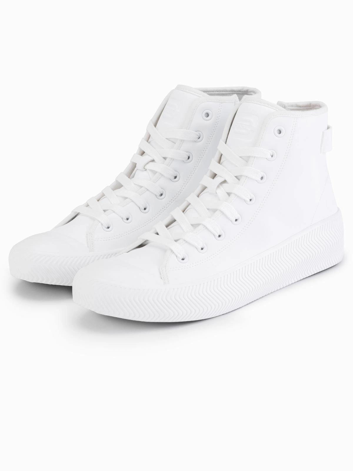 Nowoczesna forma klasycznych trampek w wersji high-top. Wykonane z syntetycznej skóry o strukturze przypominającej naturalną, idealnie komponują się z miejskimi stylizacjami. Model wyróżnia się minimalistycznym designem, dynamiczną podeszwą oraz funkcjonalnym zamkiem, który ułatwia szybkie zakładanie. Nietypowy nosek i geometryczna linia podeszwy dodają całości indywidualnego charakteru. To idealna propozycja dla osób ceniących wygodę i modowy sznyt.