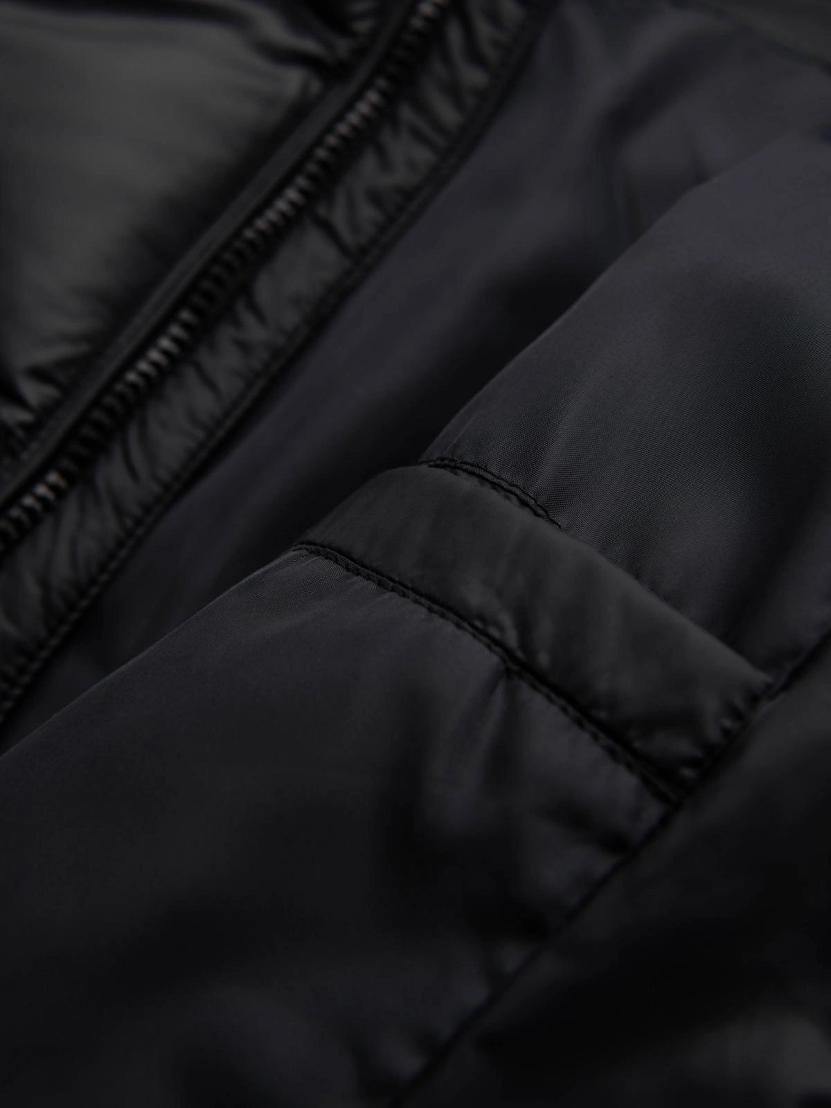 Męska kurtka z kolekcji Ombre Performance zgrabnie łączy ze sobą tkaniny o błyszczącej i matowej strukturze, tworząc ciekawy efekt wizualny. Za jej nowoczesny wygląd odpowiada także nieregularny kształt pikowania. Miękkie syntetyczne wypełnienie długo utrzymuje ciepło, dlatego sprawdzi się przy zmiennej pogodzie. Duże boczne kieszenie z polarową podszewką dodają kurtce funkcjonalności oraz zapewniają wygodę noszenia.