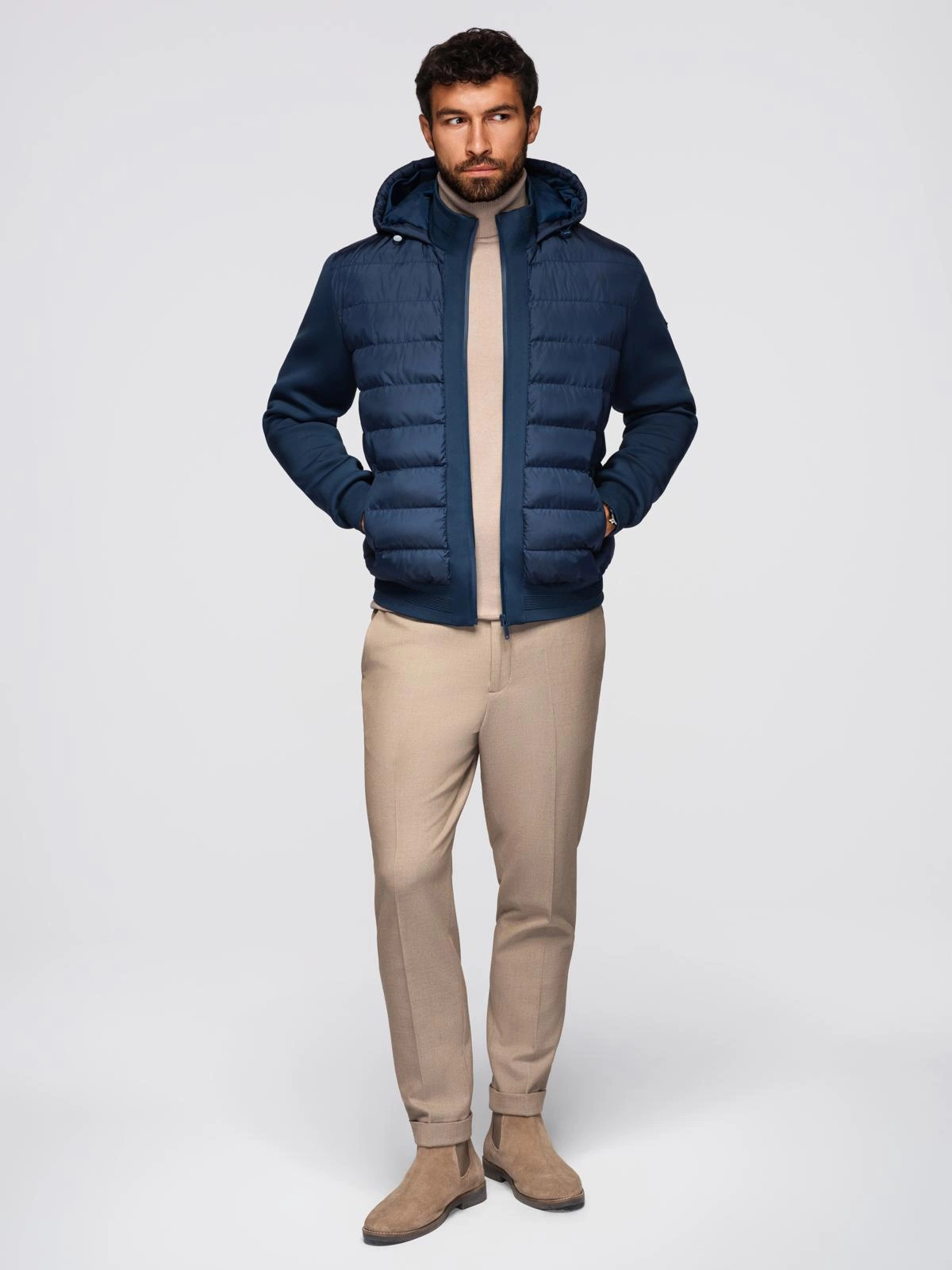 Nowoczesna forma klasycznej bomberki – ta kurtka z kolekcji Quintessence to esencja miejskiego stylu z nutą elegancji. Pikowany front i tył kontrastuje z dzianinowymi rękawami, tworząc intrygującą całość o wyrazistym charakterze. Dzięki lekkiej ocieplinie, wysokiemu kołnierzowi i regulowanemu kapturowi doskonale sprawdzi się w chłodniejsze dni, nie rezygnując przy tym z modowego wyrazu. To idealna propozycja dla mężczyzny, który ceni design, wygodę i funkcjonalność.