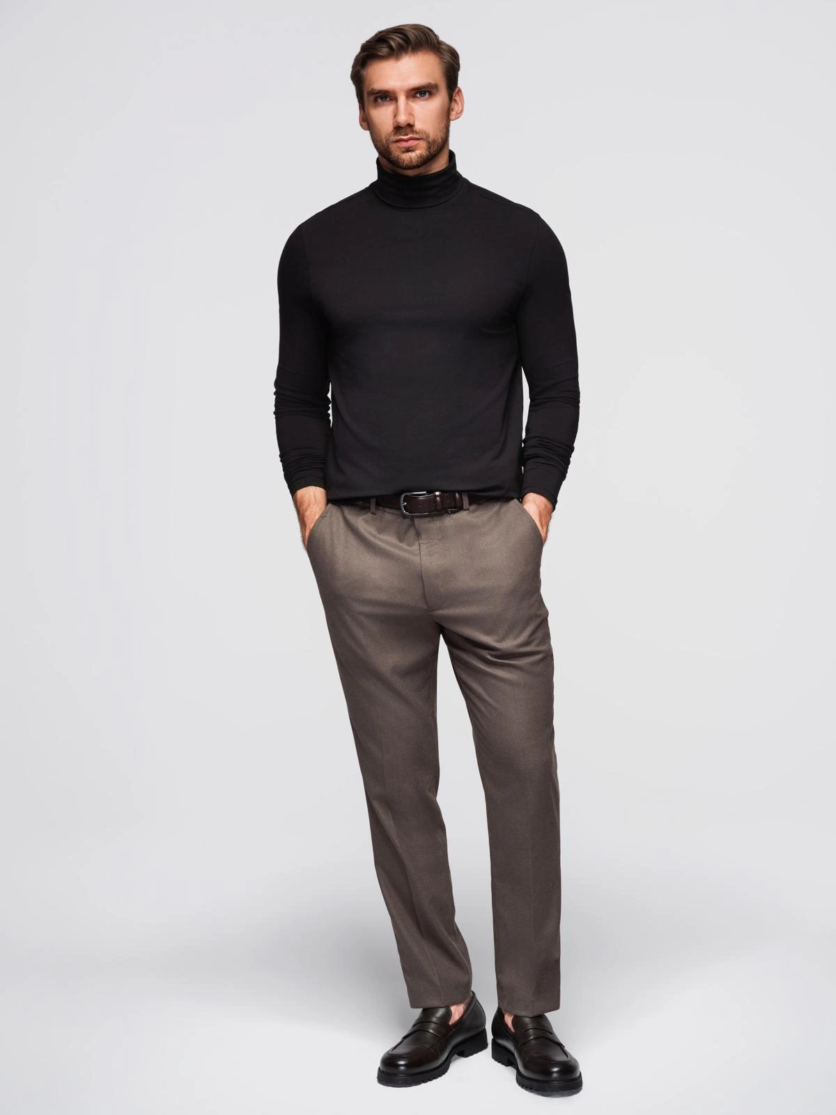 Nowoczesny, minimalistyczny męski longsleeve z golfem to propozycja, która idealnie wpisuje się w jesienno-zimowe stylizacje. Model z linii Ombre łączy wygodę dzianiny z elegancką linią kroju, podkreślając sylwetkę i zapewniając komfort noszenia na co dzień. Idealny zarówno do jeansów, jak i bardziej formalnych spodni.