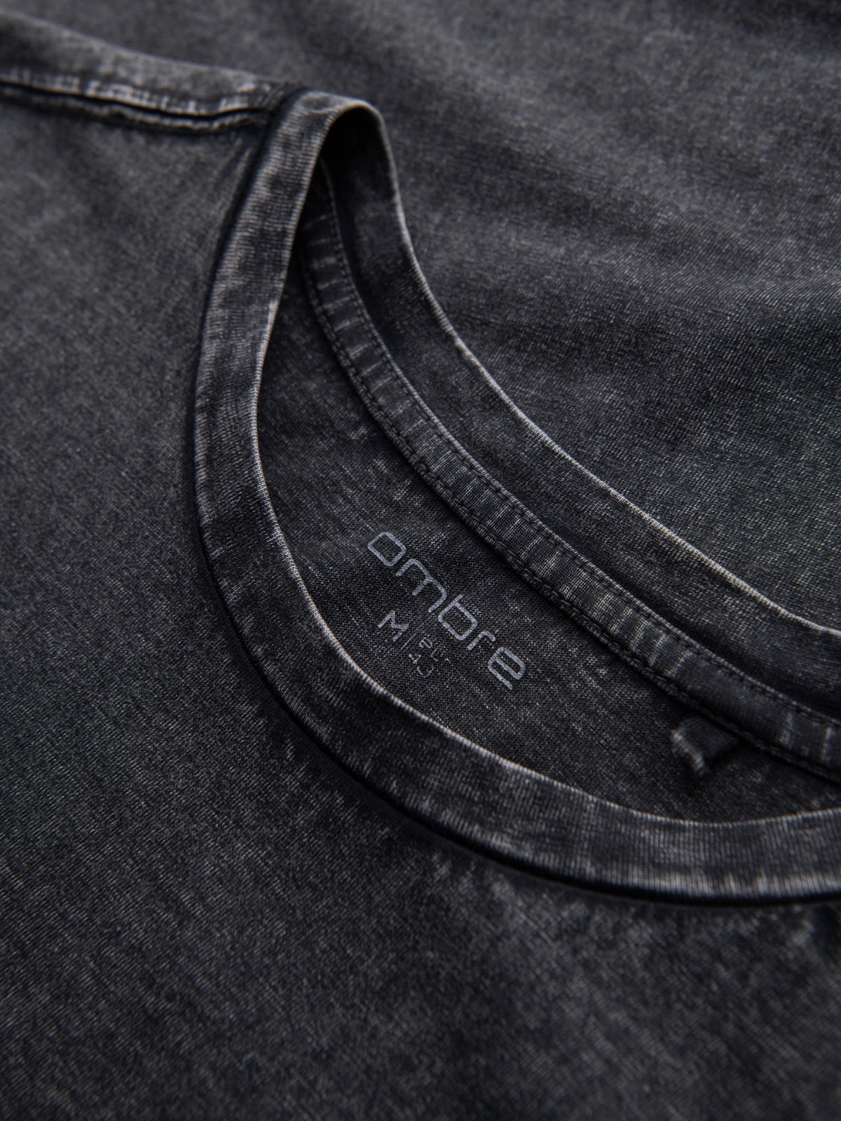 Podstawowy, a zarazem wyróżniający się T-shirt z efektem sprania to nowoczesna wersja klasycznej koszulki, idealna dla mężczyzn ceniących styl i komfort. Delikatny efekt cieniowania nadaje mu wyjątkowego charakteru, który świetnie komponuje się zarówno z jeansami, jak i z letnimi szortami.