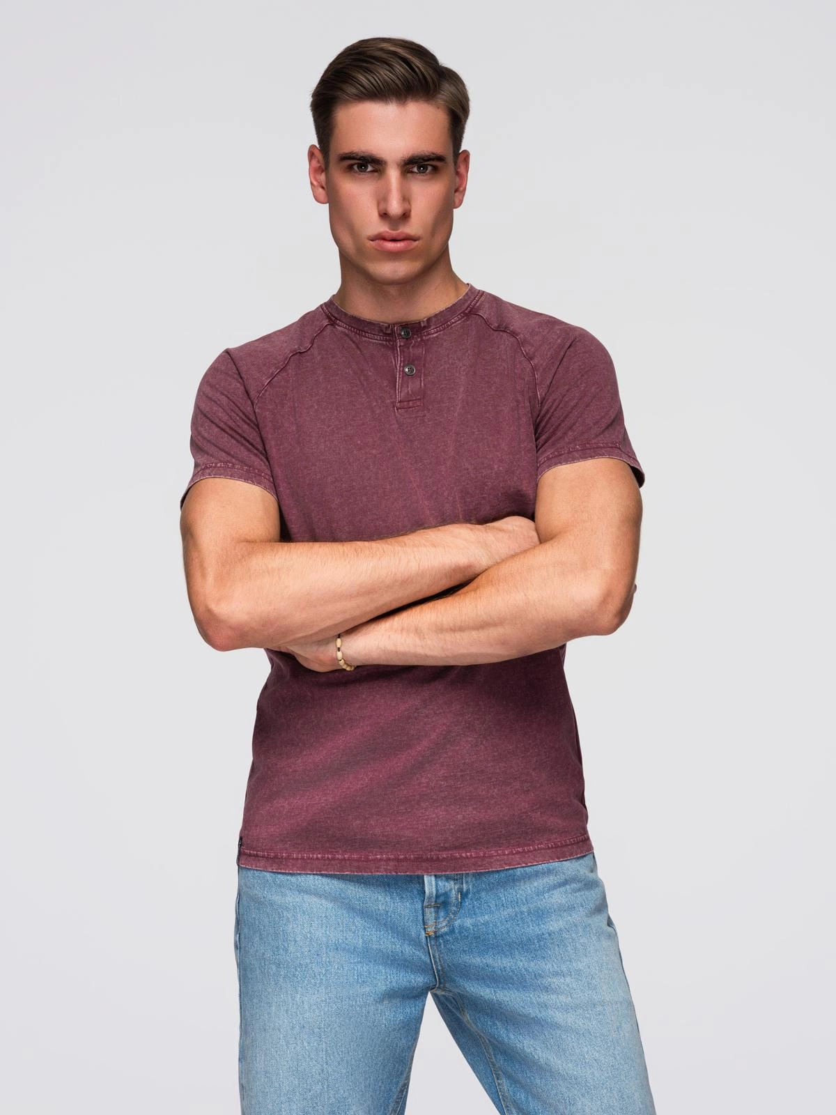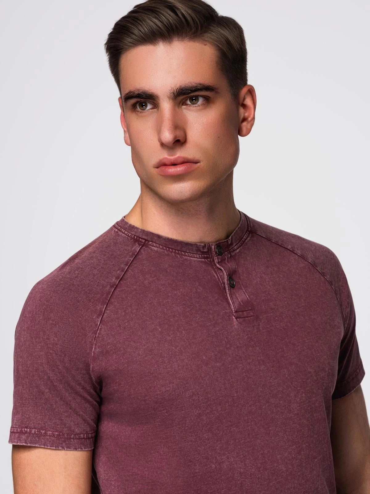 Stylowy i komfortowy – ten T-shirt to must-have w garderobie mężczyzny, który ceni sobie modny wygląd i wygodę na co dzień. Cieniowana dzianina bawełniana nadaje mu niepowtarzalny, lekko vintage’owy charakter. Rozpinany dekolt i raglanowe rękawy dodają mu swobodnego stylu, idealnego na letnie dni i weekendowe wyjścia.