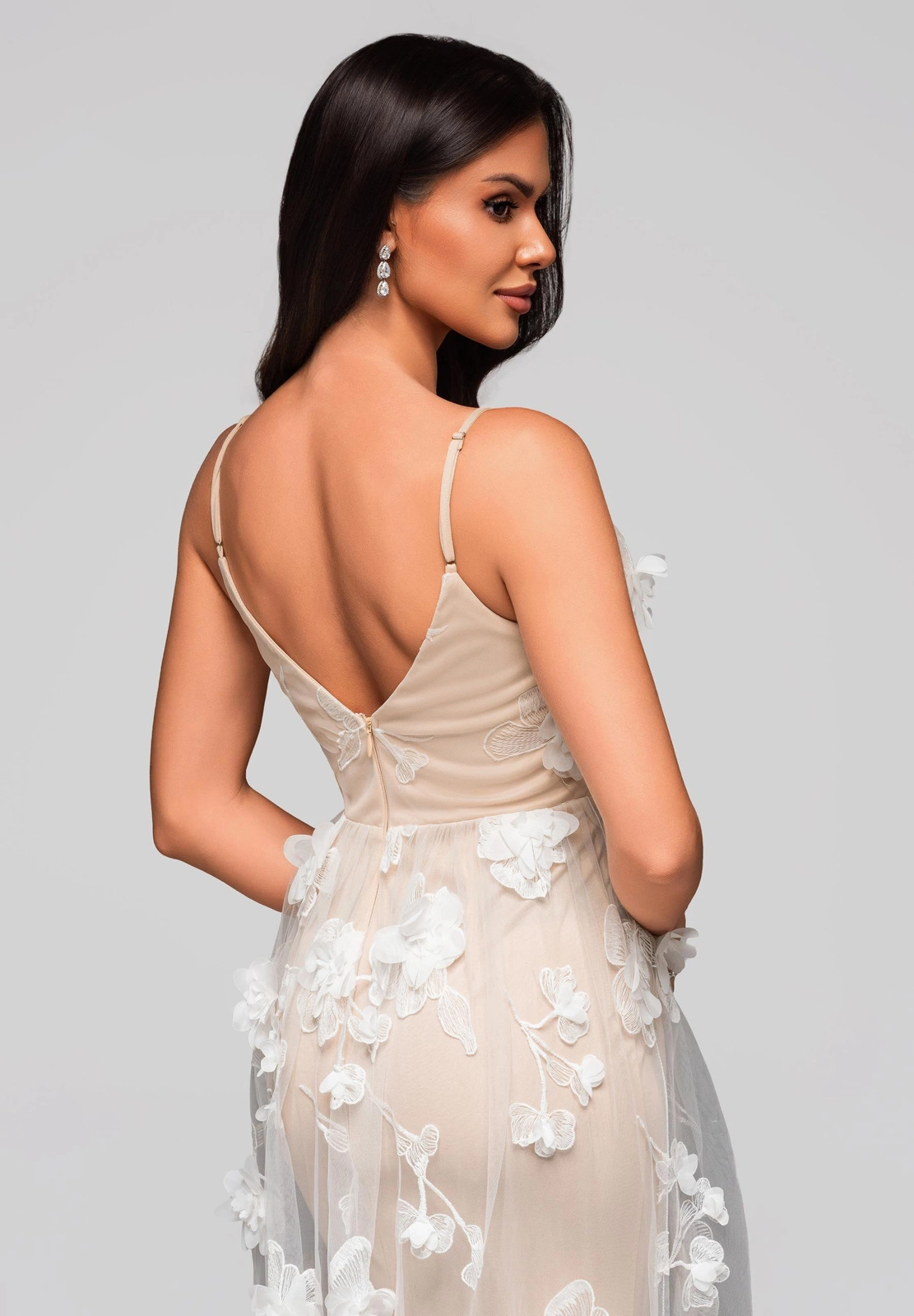 Sukienka wieczorowa LA-OM-DLR203- beżowa