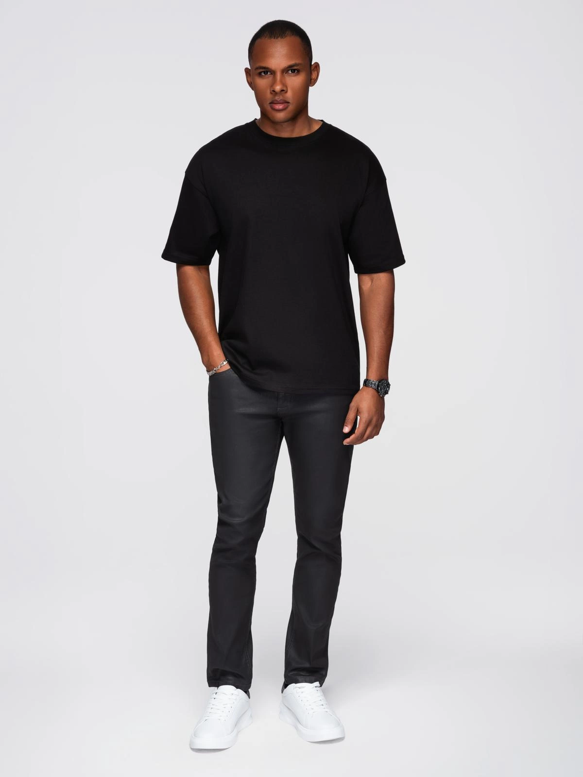 Stylowy oversize’owy T-shirt z linii EXIMIO to propozycja dla mężczyzn, którzy szukają czegoś więcej niż klasyczna czerń. Na pierwszy rzut oka minimalistyczny, zaskakuje spektakularną aplikacją z cekinów z motywem skrzydeł na plecach. Wygodny fason i wysokiej jakości dzianina z dodatkiem bawełny z recyklingu sprawiają, że to nie tylko modny, ale i odpowiedzialny wybór.