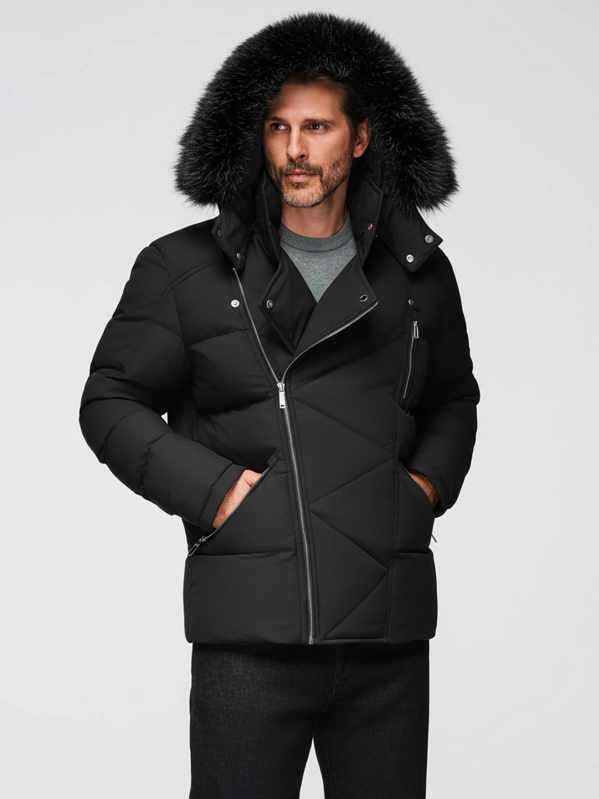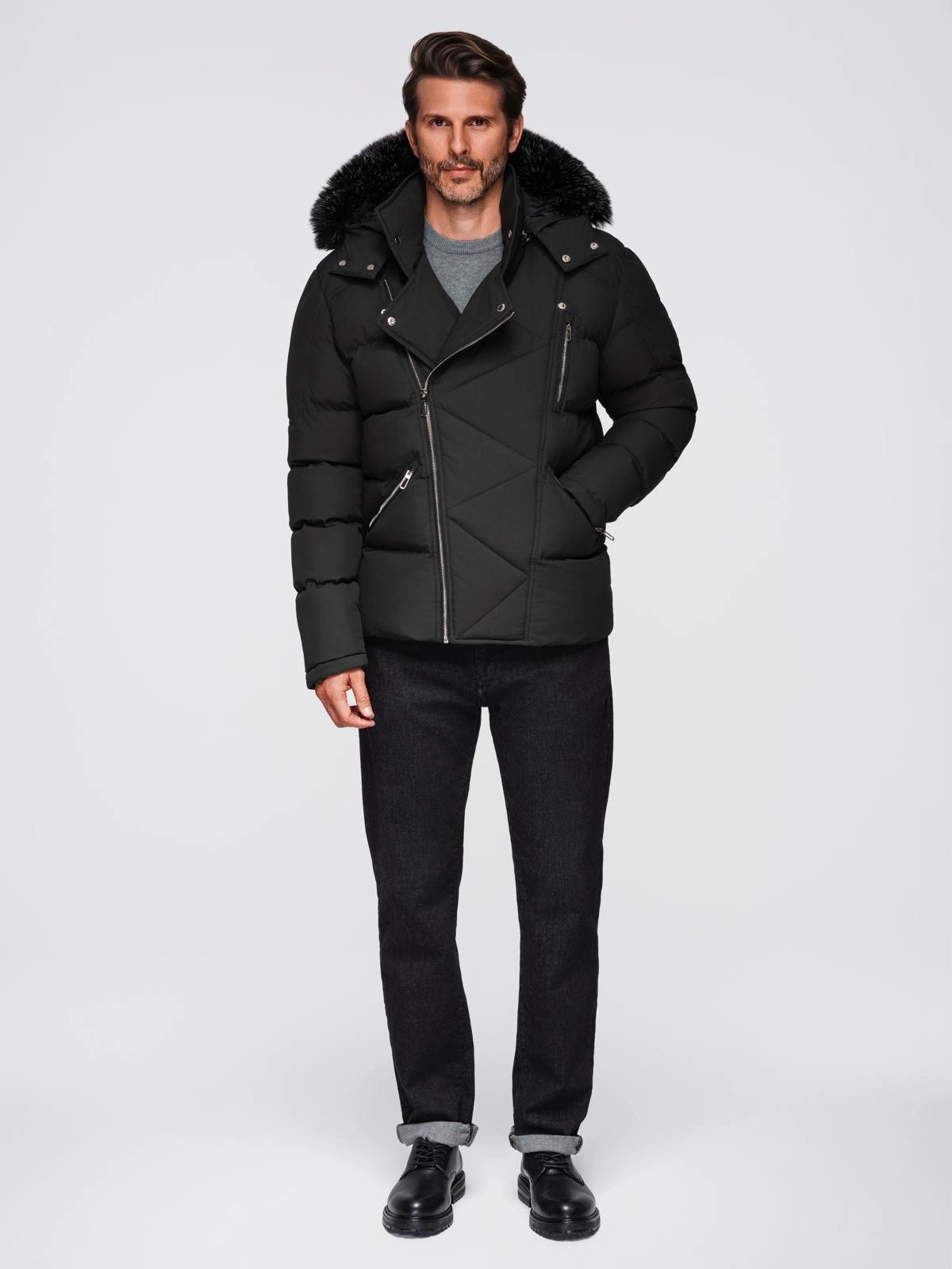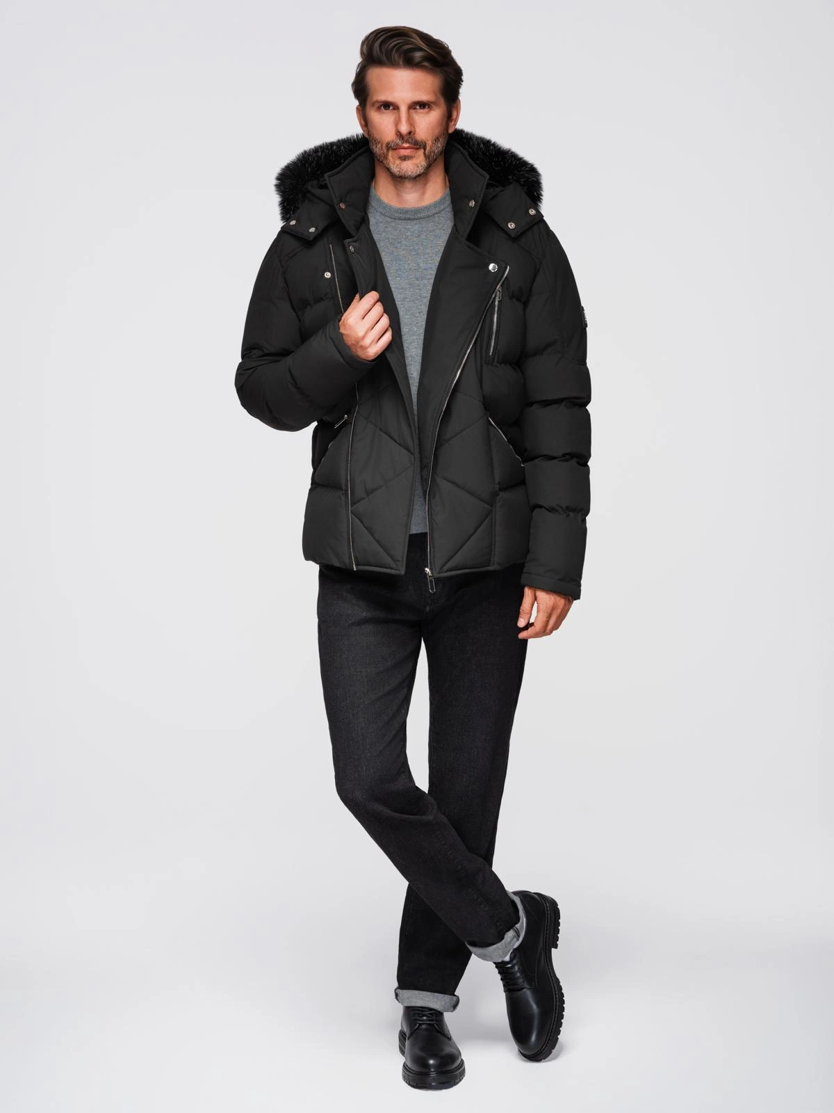 Stylowa i wyrazista – ta kurtka z kolekcji LEVEL UP została zaprojektowana z myślą o nowoczesnych mężczyznach, którzy cenią niebanalne połączenia funkcjonalności i modowego sznytu. Pikowana konstrukcja typu puffer, wyraziste srebrne detale oraz asymetryczne zapięcie inspirowane klasyczną ramoneską tworzą unikalny zimowy look. Model przyciąga uwagę dzięki kapturowi z futerkiem oraz charakterystycznym przeszyciom na klapie.