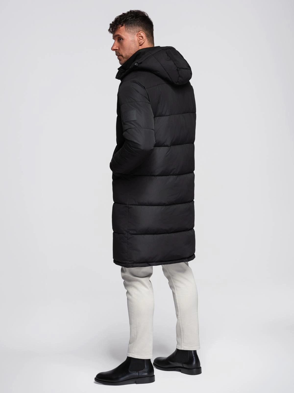 Męska długa kurtka zimowa z kolekcji QUINTESSENCE to doskonałe połączenie funkcjonalności, komfortu i nowoczesnego stylu. Sięgająca do kolan, zaprojektowana w regularnym kroju, idealnie sprawdzi się w najchłodniejsze dni. Wypełniona w 100% poliestrem, zapewnia wysoką izolację termiczną, a gładki, matowy materiał zewnętrzny nadaje jej minimalistyczny, męski charakter. Odpinany kaptur, mankiety regulowane na zatrzaski i centralna patka z zapięciem na zatrzaski zwiększają funkcjonalność i ochronę przed zimnem. Na ramieniu i kapturze znajdują się gumowe naszywki z brandingiem, które dodają subtelnego wyrazu stylizacji.