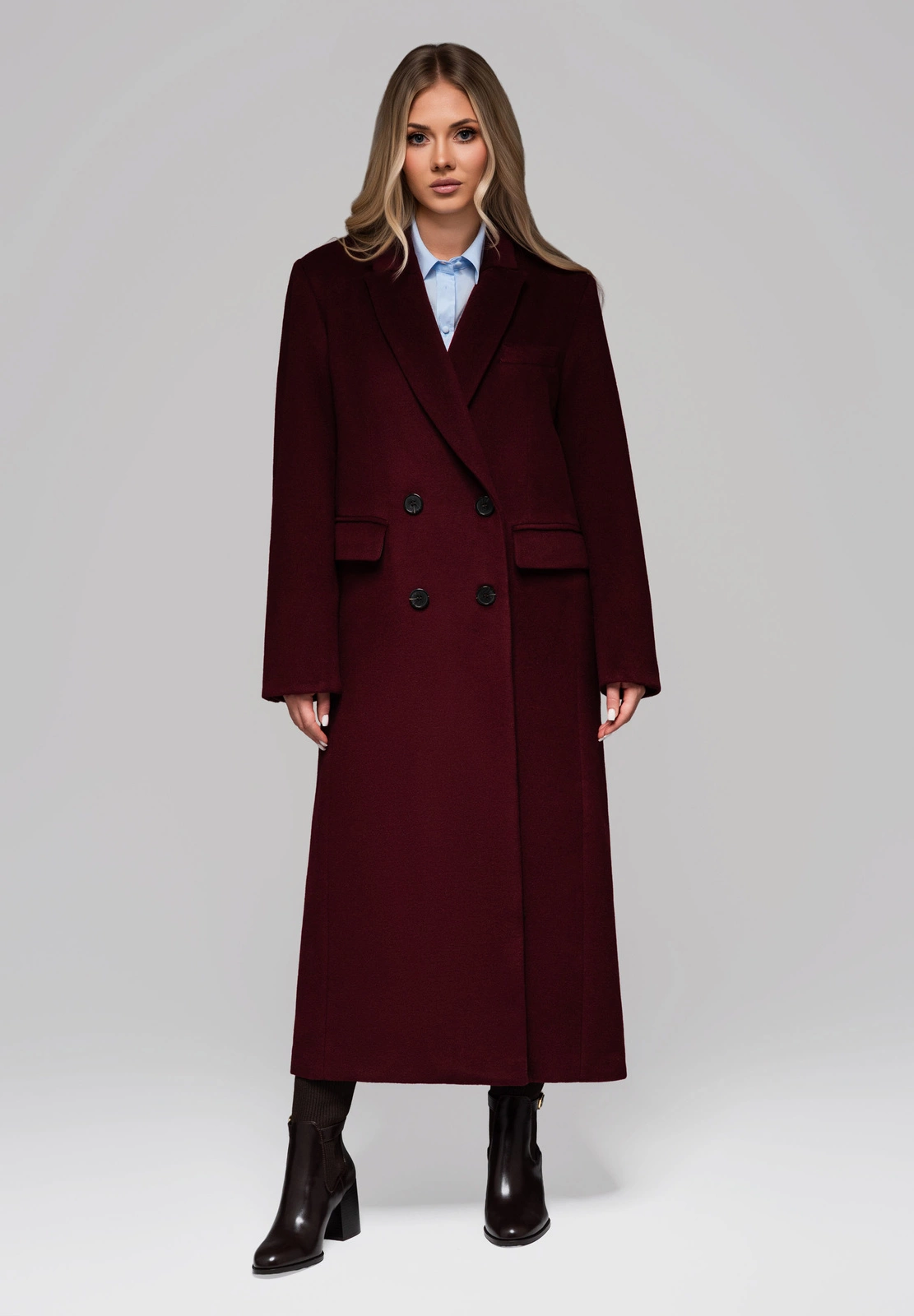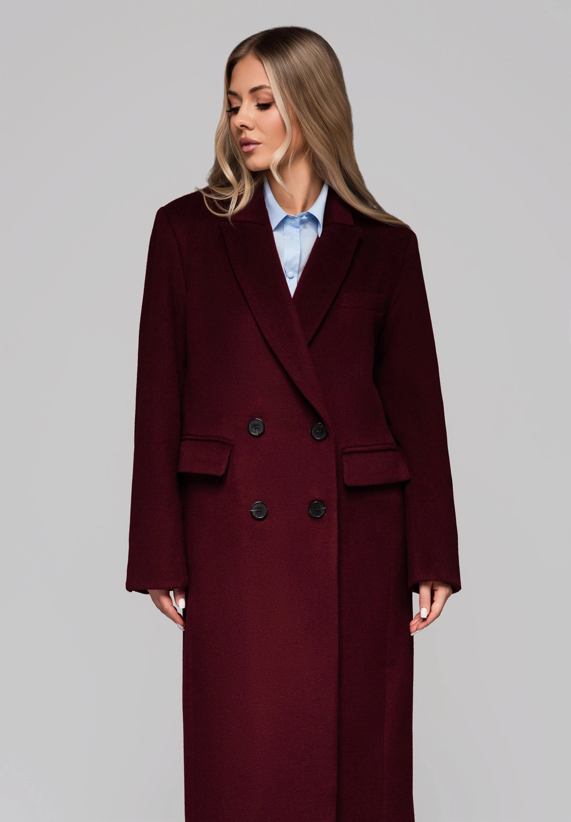 Płaszcz damski wełniany długi LARICA OW-COLC-0100 v3 - bordowy