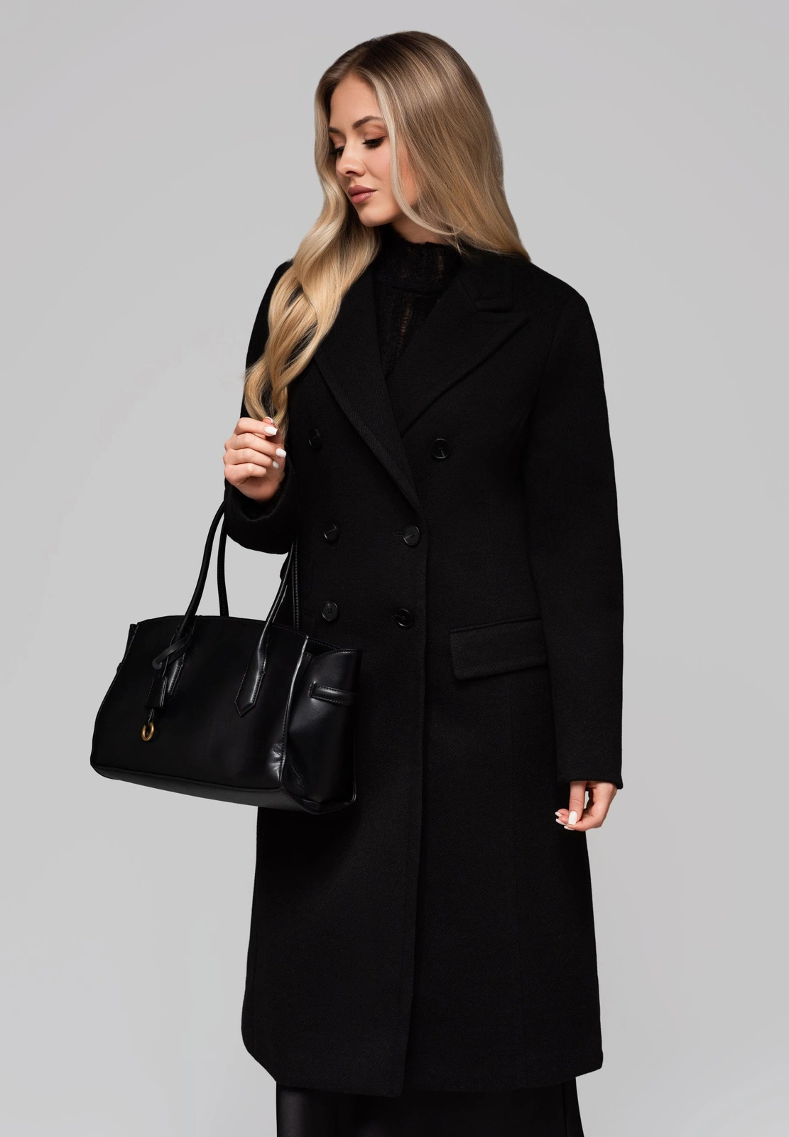Płaszcz damski dwurzędowy dopasowany LARICA OW-COLC-0108 v2 - czarny
