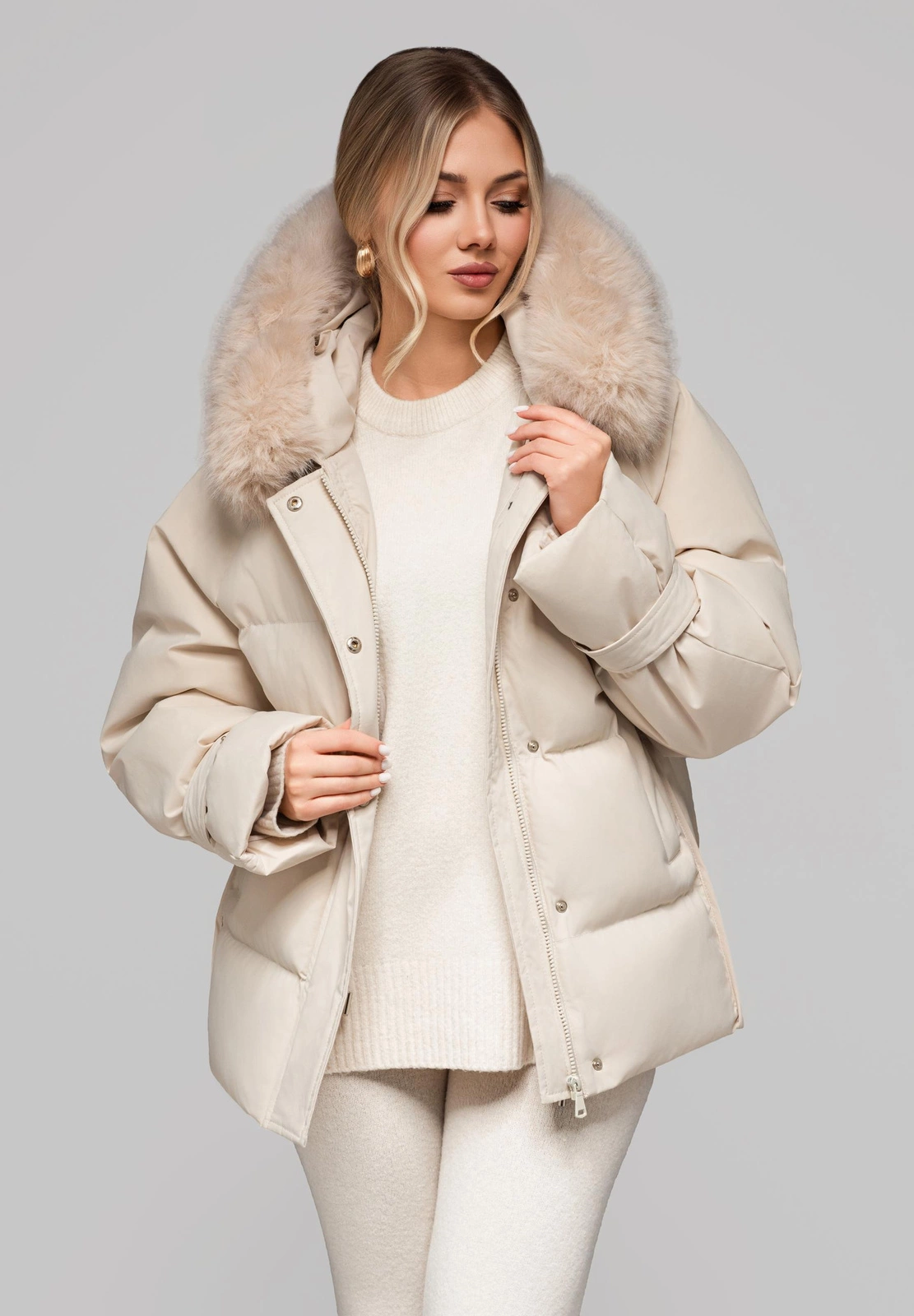 Kurtka damska ocieplana z futerkiem OW-JAHP-0105 v2 - beżowa