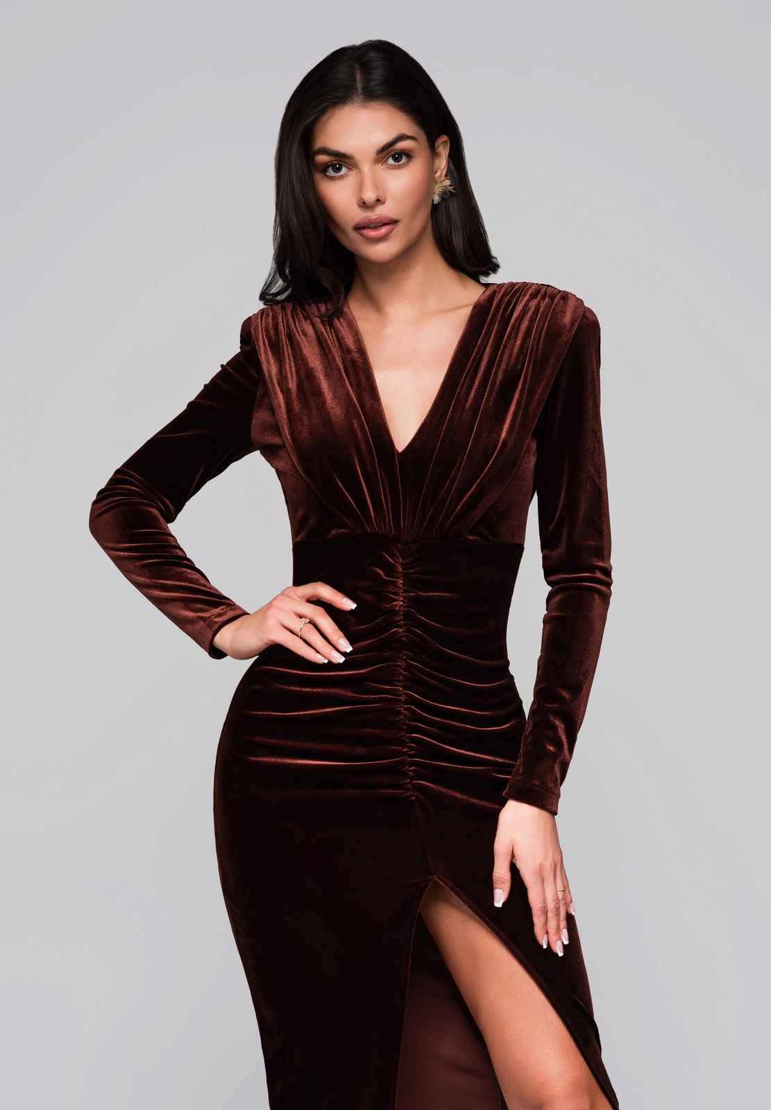 Sukienka wieczorowa LA-OM-DLR253 - brown