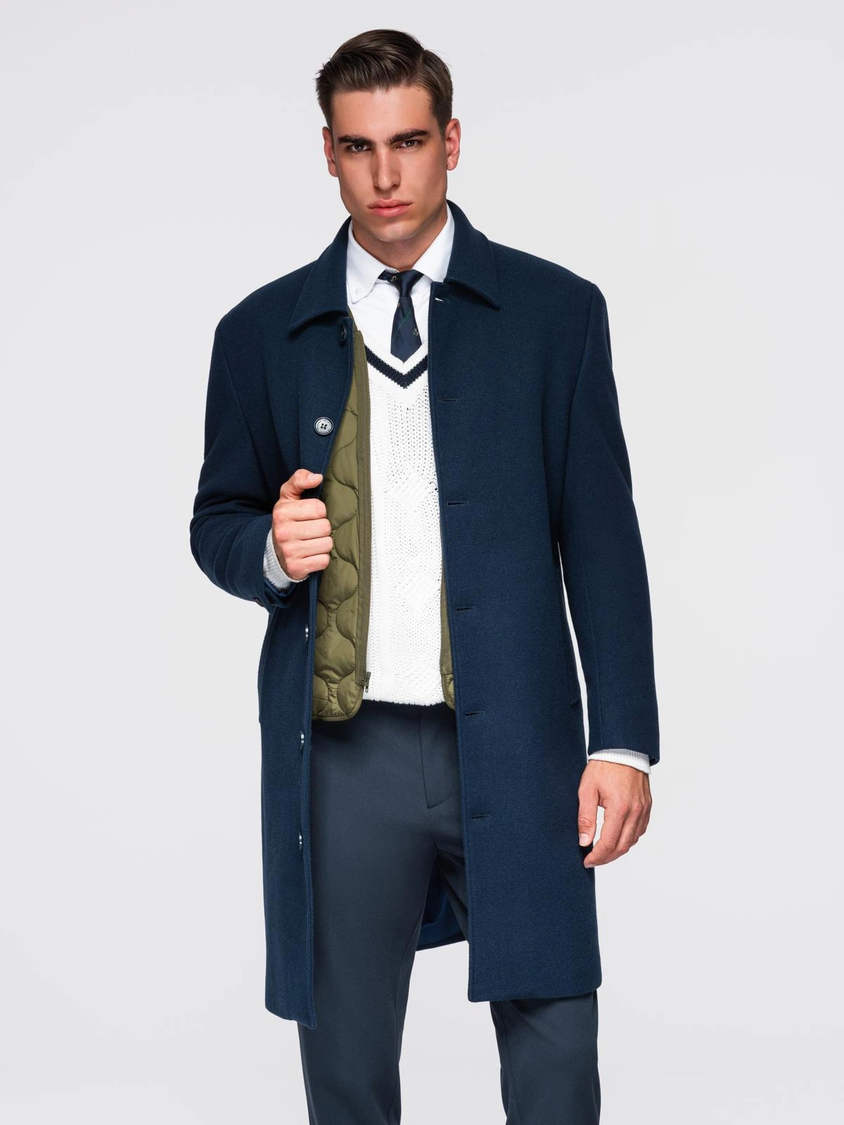 Stylowy płaszcz z kołnierzykiem to wyjątkowa propozycja dla eleganckich mężczyzn. Świetnie komponuje się z zestawami wyjściowymi, a także doda klasy codziennym stylizacjom. Jednolita stonowana kolorystyka płaszcza pozwala na wiele swobodnych interpretacji modowych. Pod koszulowy kołnierzyk można śmiało założyć szalik lub komin. Za praktyczne zastosowanie płaszcza odpowiada lekko ocieplana kamizelka z możliwością odpięcia.