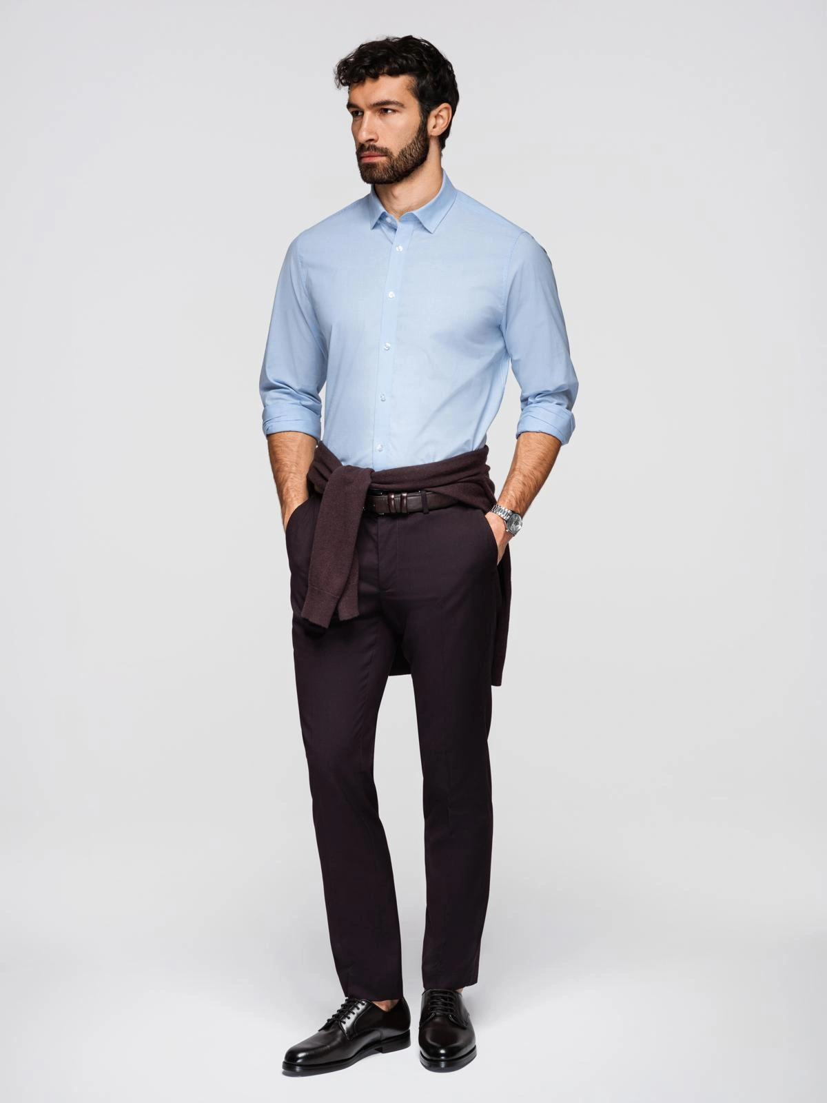 Uniwersalna propozycja do biura, na spotkania i codzienne wyjścia, kiedy zależy na schludnym, niewymuszonym wyglądzie. Sprawdza się zarówno w zestawie z garniturem i skórzanymi półbutami, jak i w wersji smart casual z chinosami i mokasynami. Dobrze komponuje się z lekkim swetrem w serek lub rozpinanym kardiganem oraz z gładkim paskiem. To baza garderoby, która ułatwia szybkie budowanie zestawów na cały tydzień.